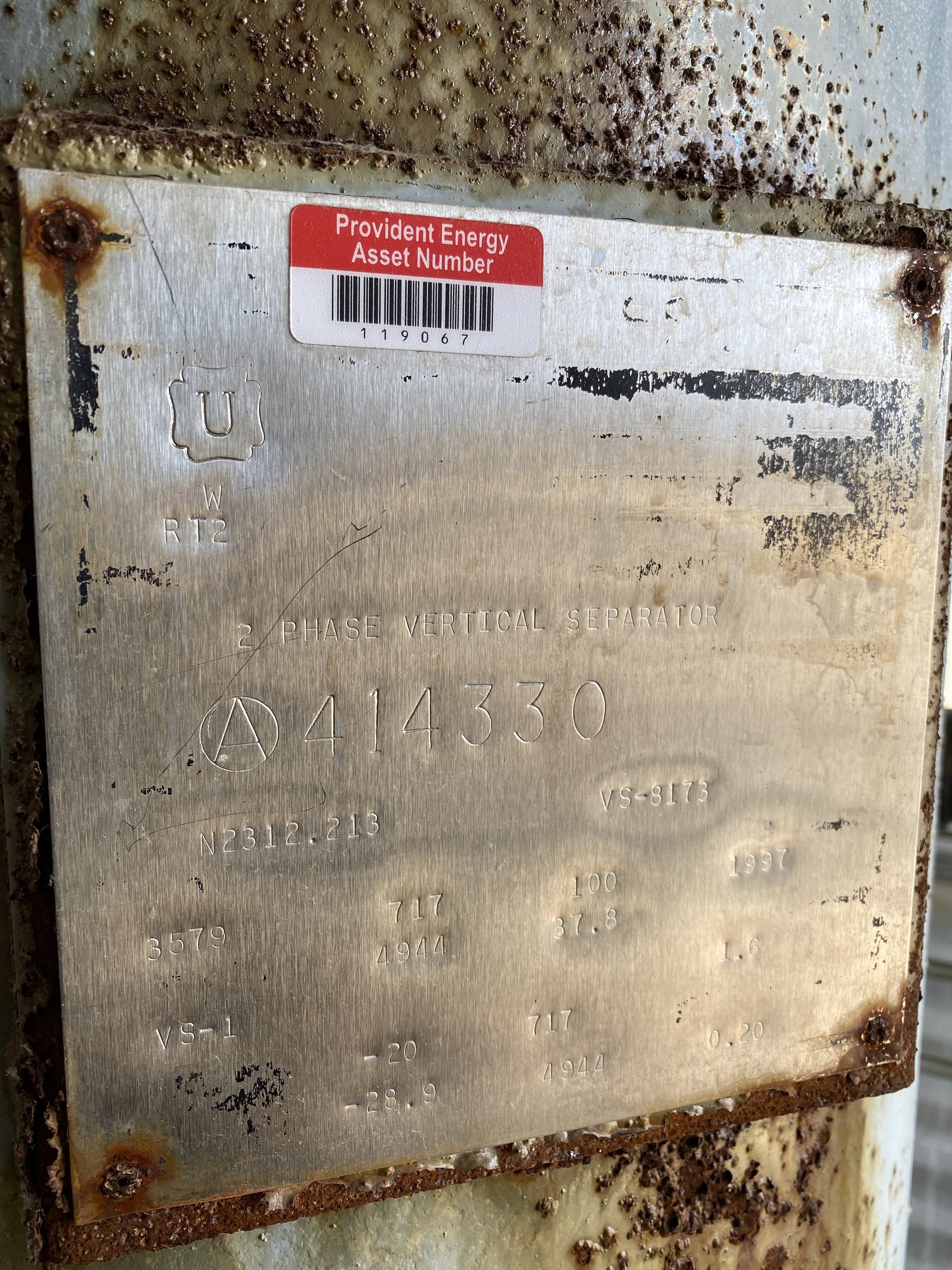 16" X 8' 717 PSI Sweet Vertical 2-Phase Separator Package