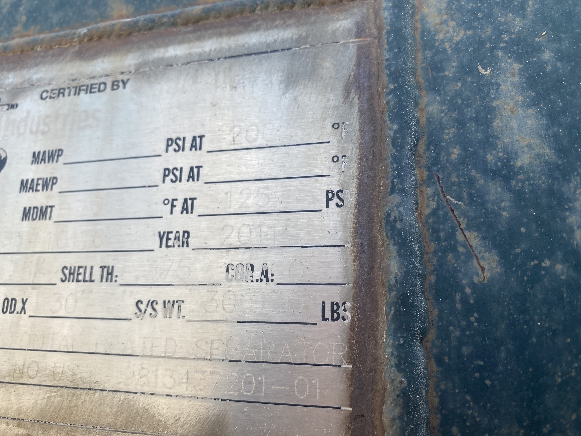 Tag #: Horizontal Heated Separator