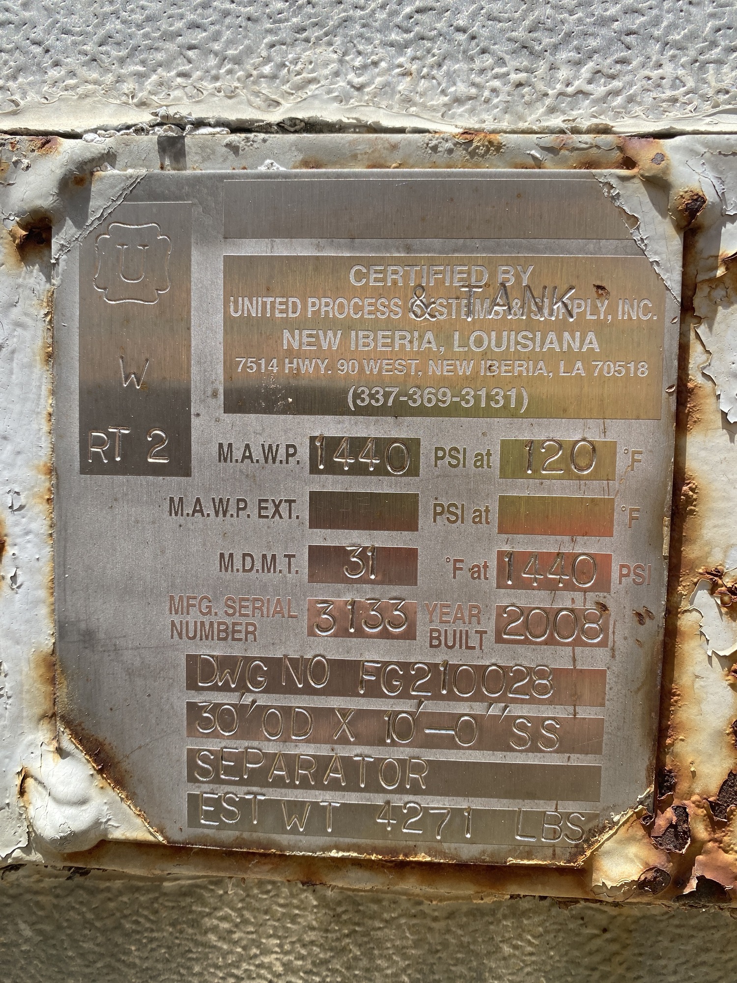 Manufacturer: United Process & Tanks