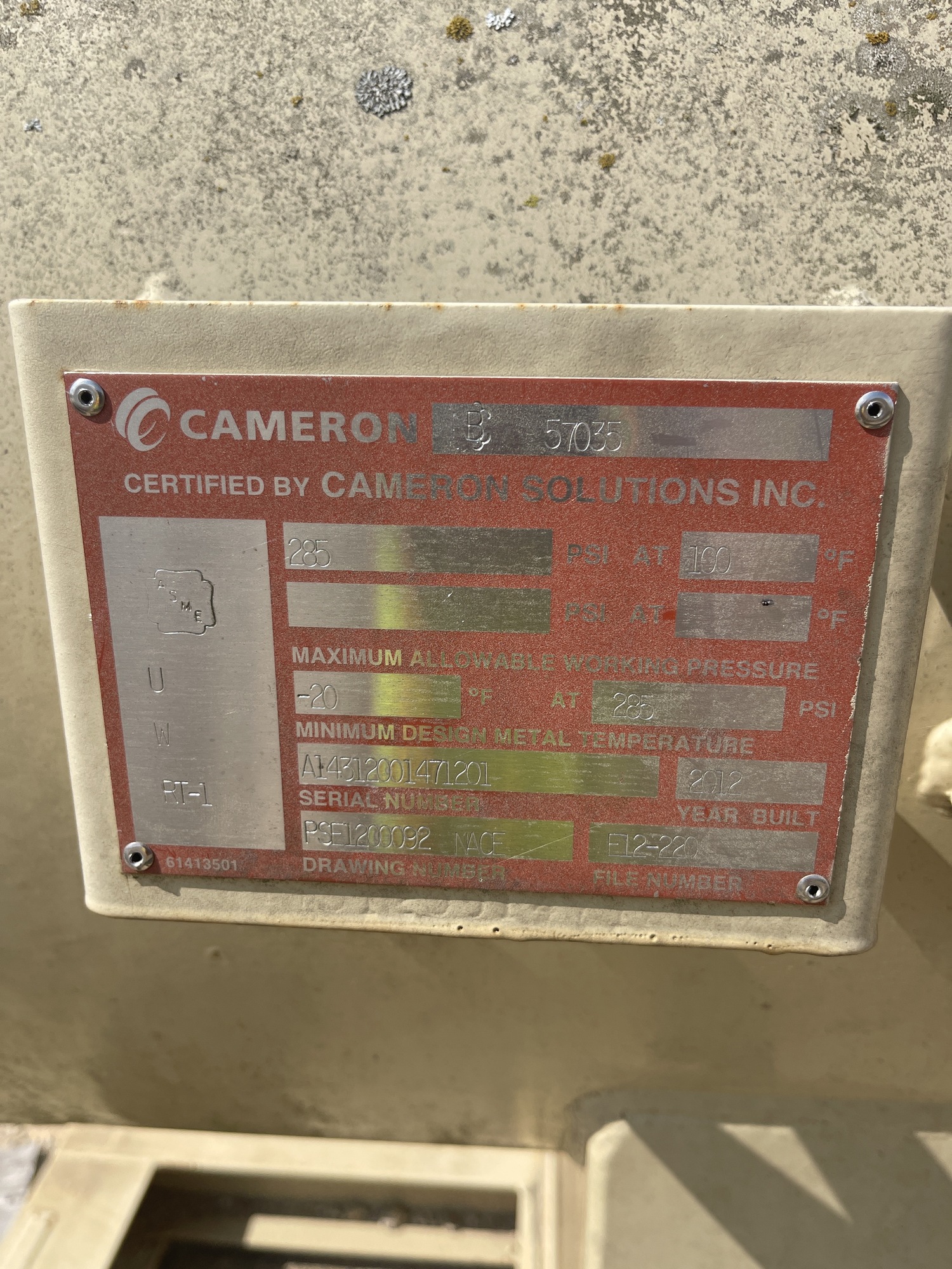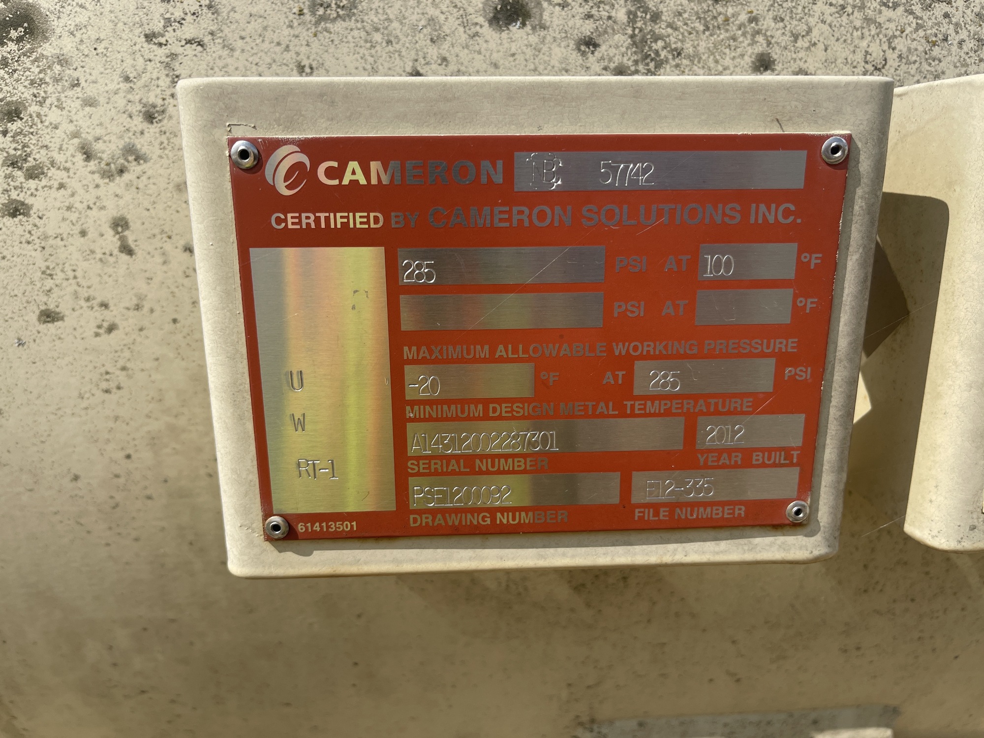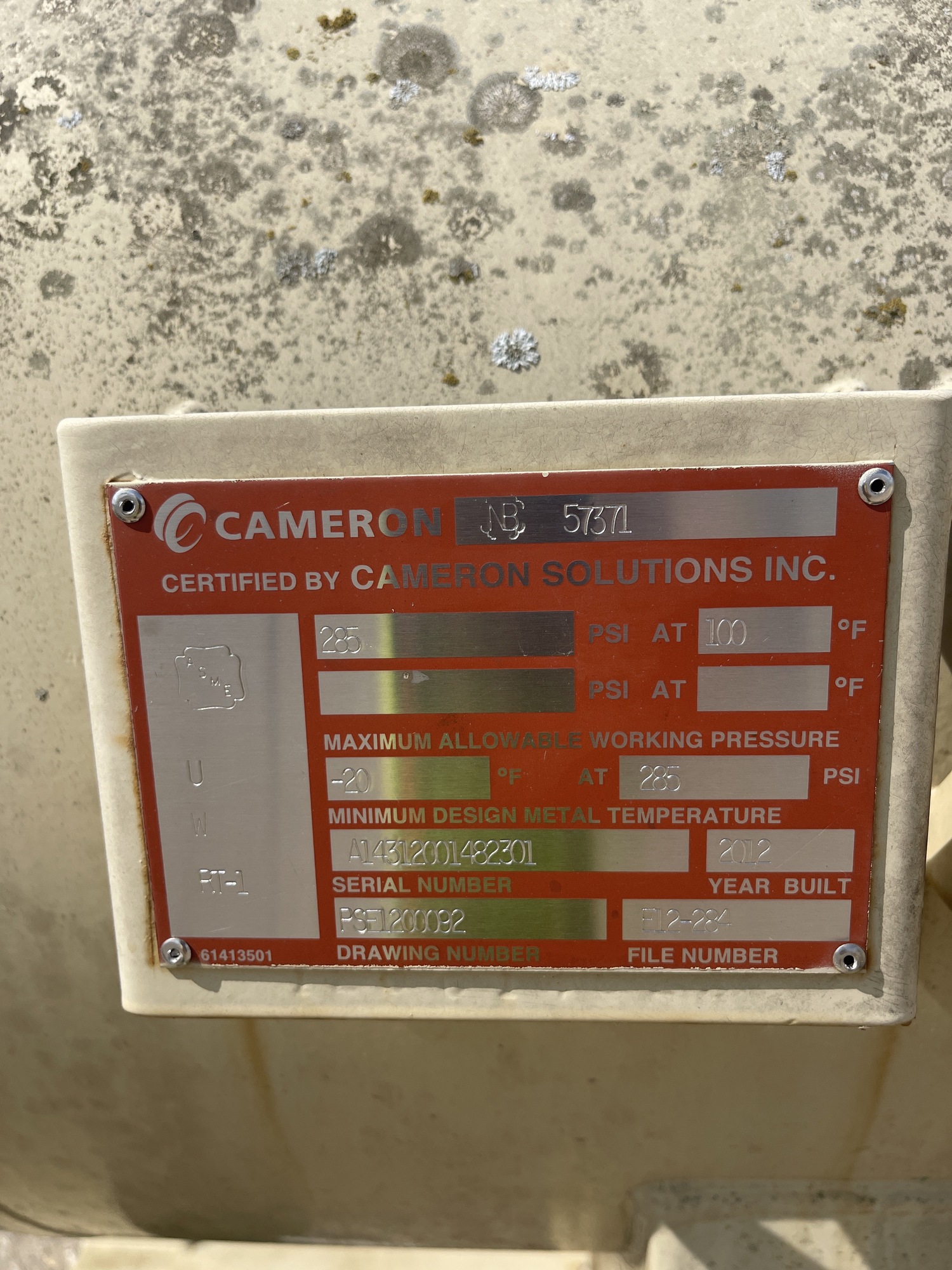 MAWP: 285 PSI at 100 F