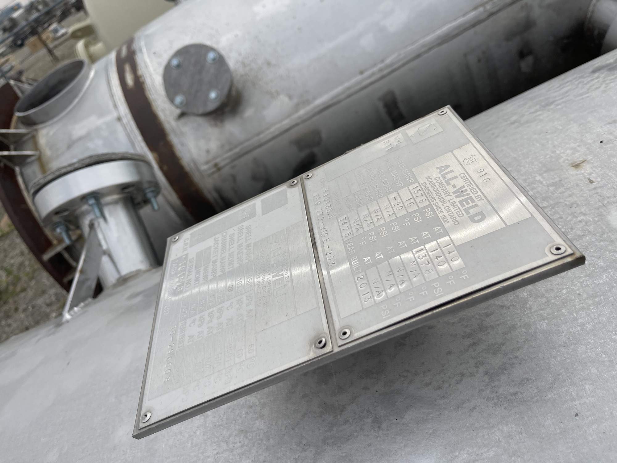 Shell MAWP: 1378 PSI at 140 F
