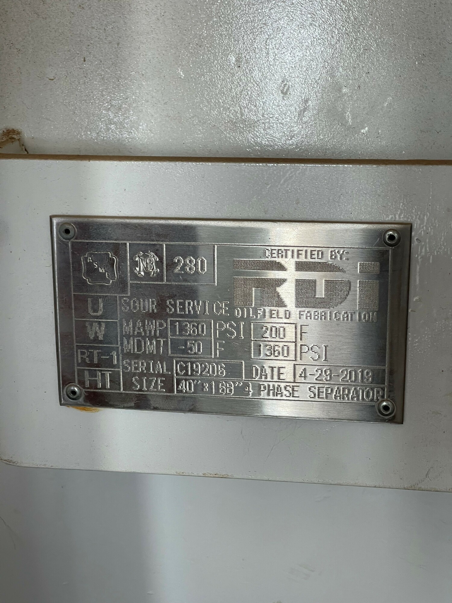 Size: 40" x 14' 4 Phase Separator