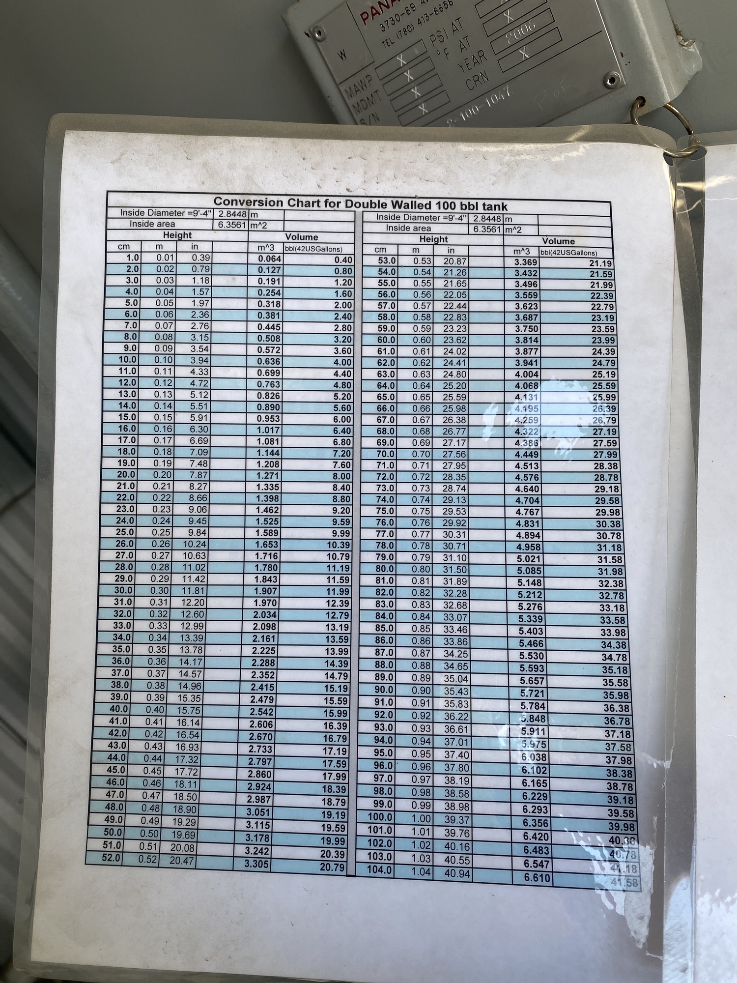 Capacity: 100 BBL
