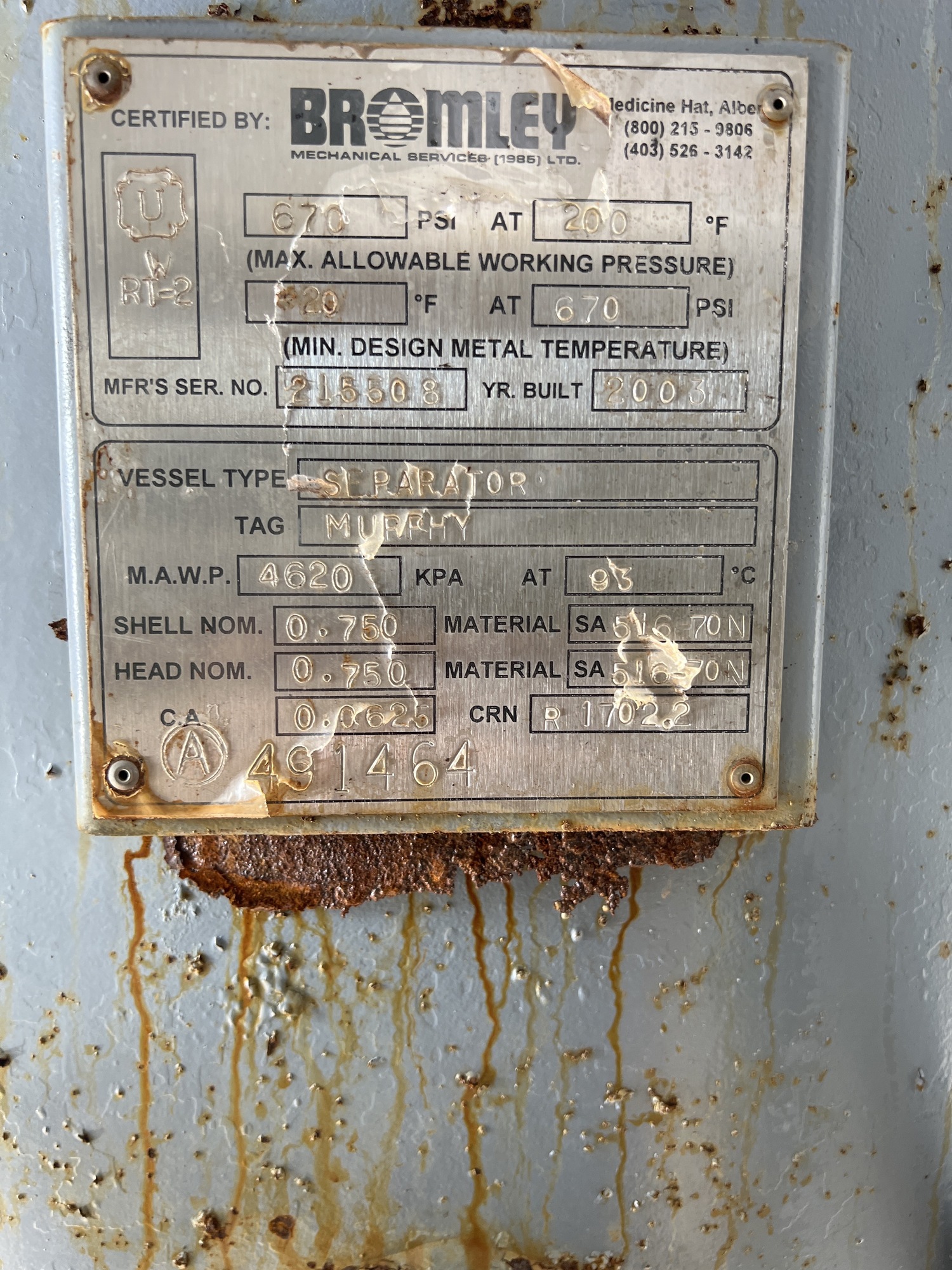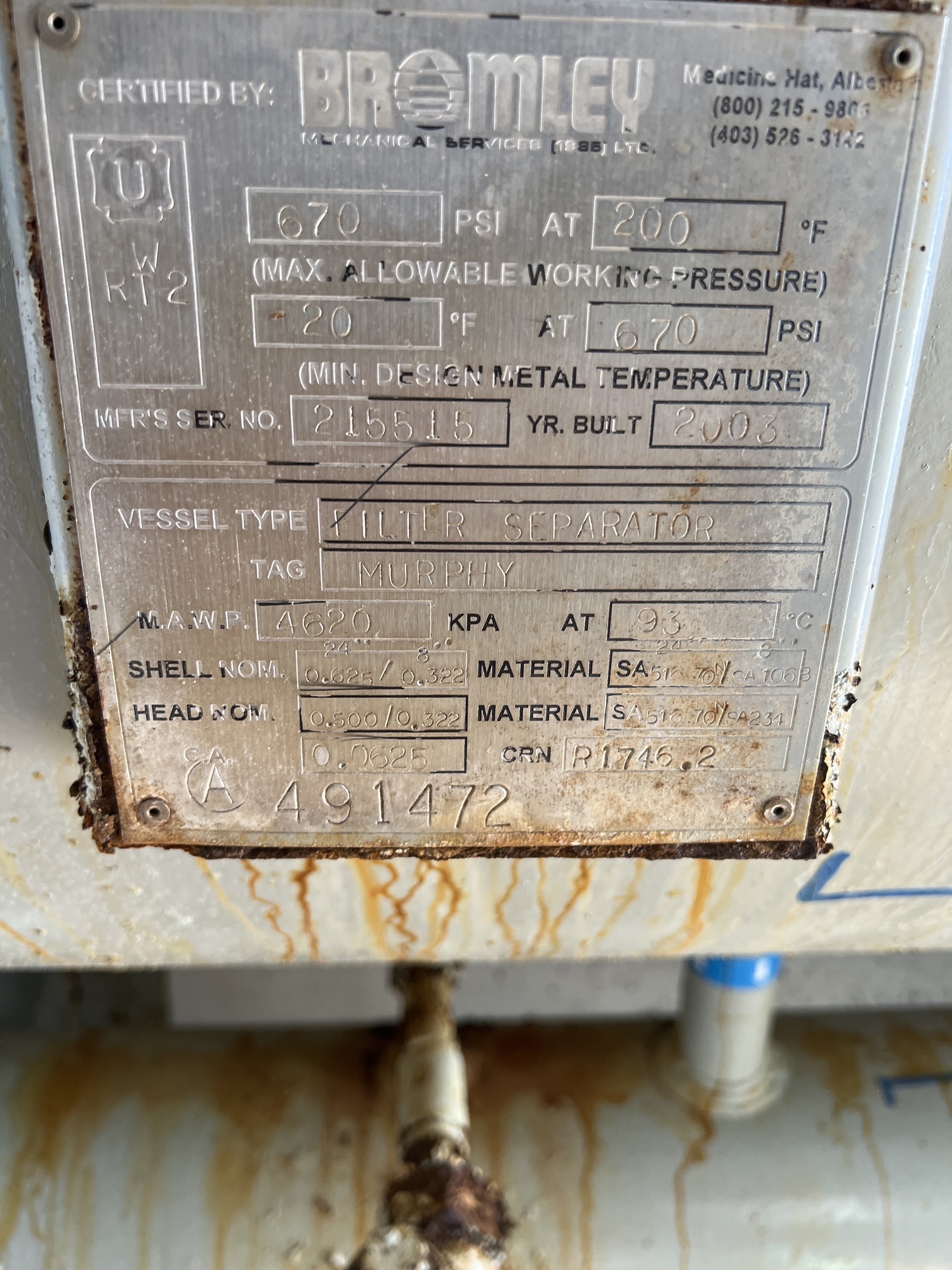 MAWP (PSI) 670