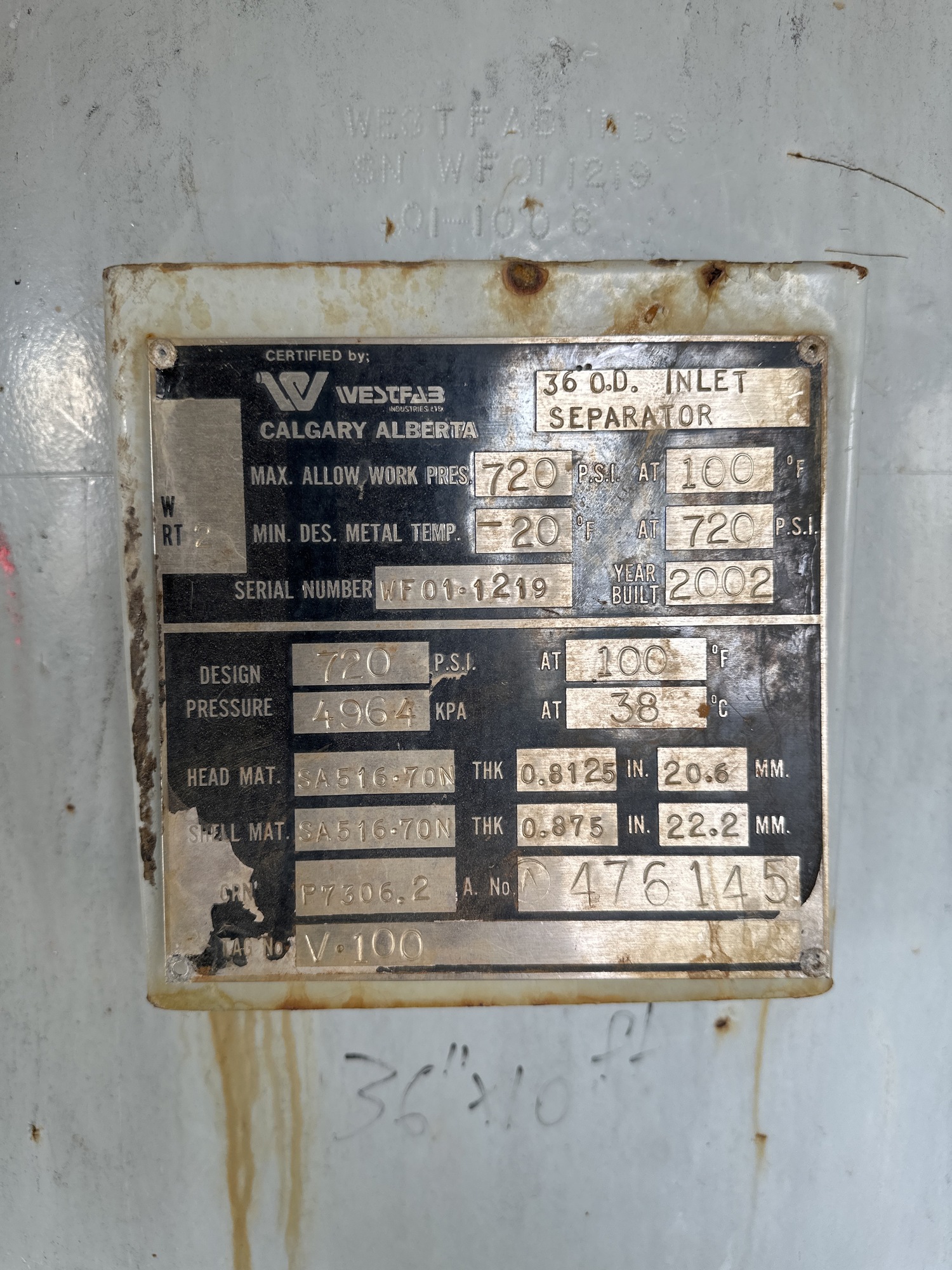MAWP: 720 PSI at 100°F