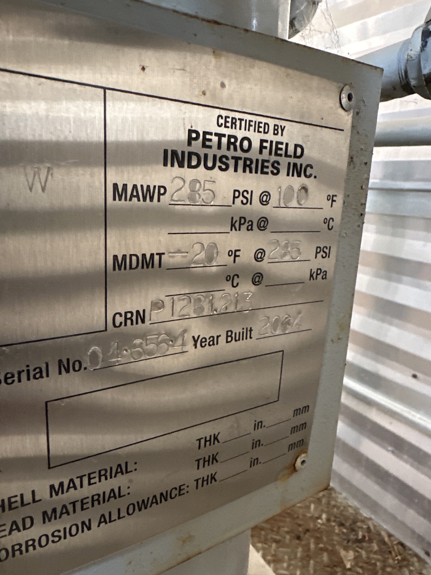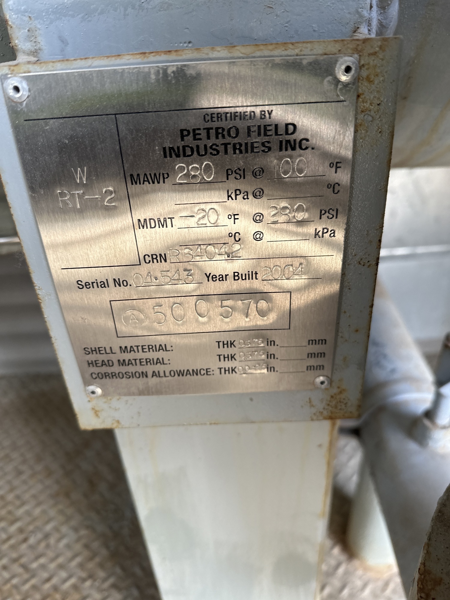 MAWP: 280 PSI at 100°F