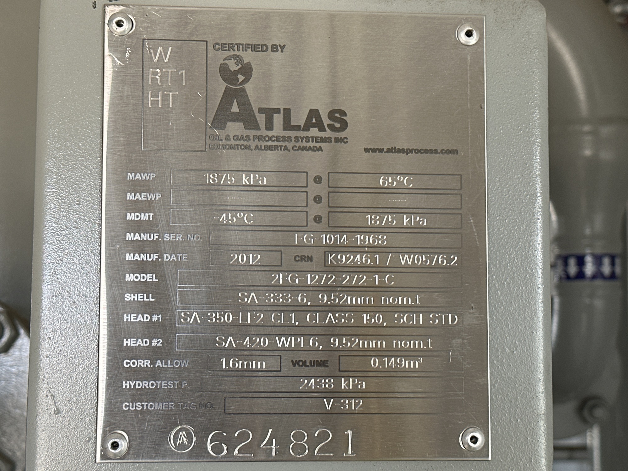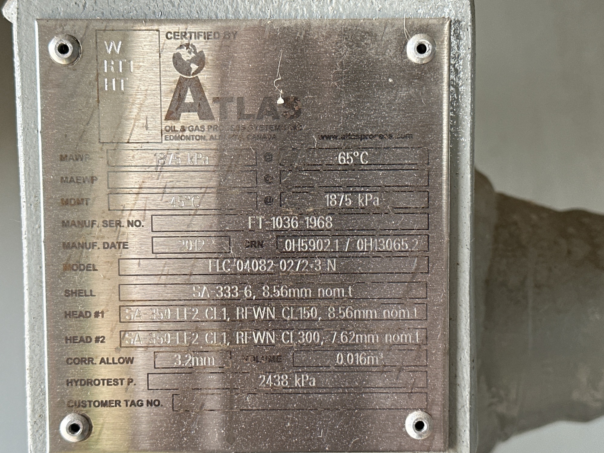MAWP: 272 PSI at 150°F