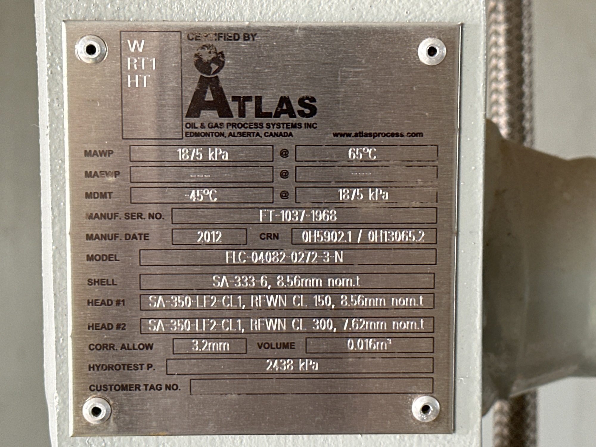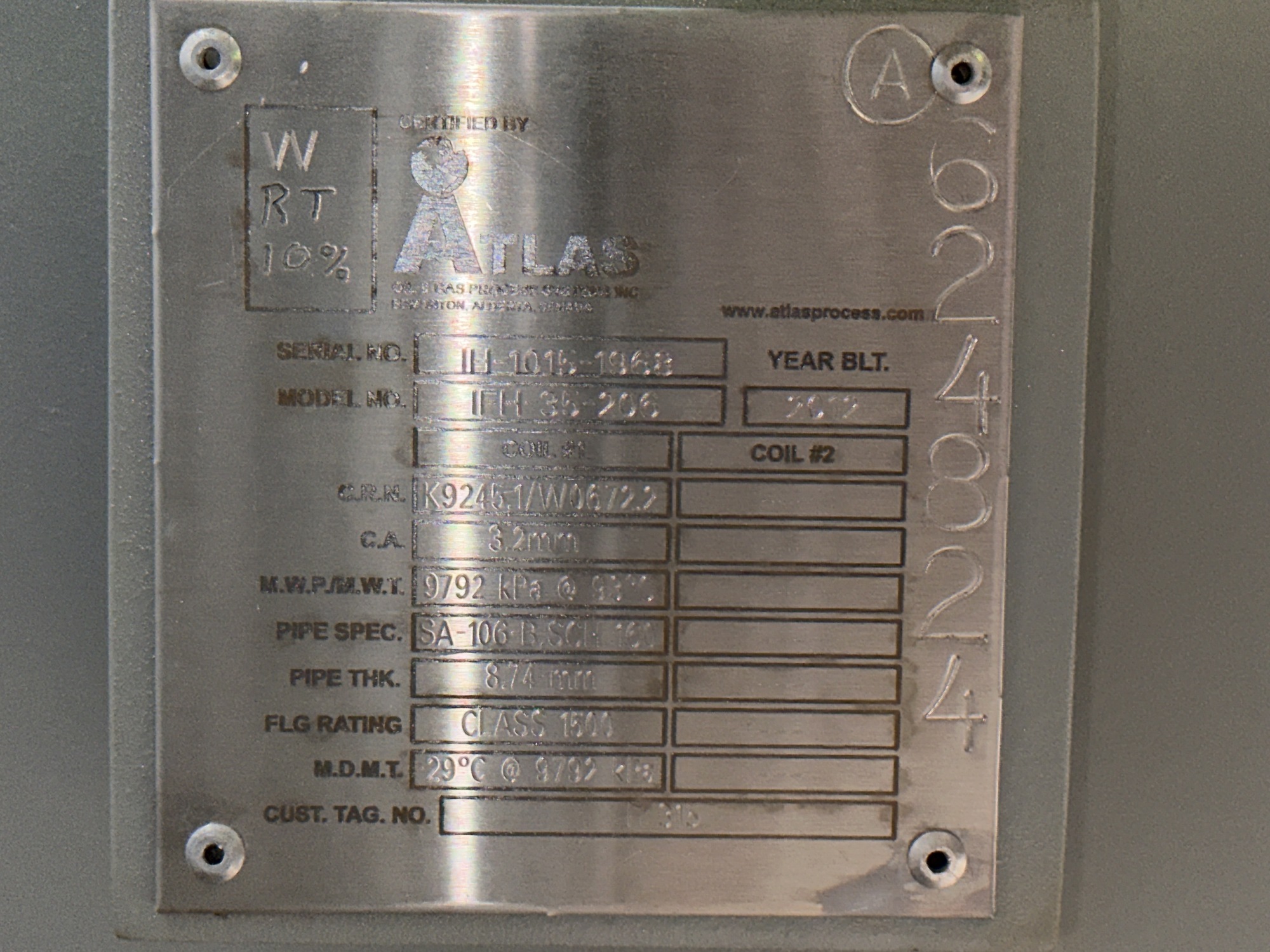 Hydro Test Press: 353 PSI