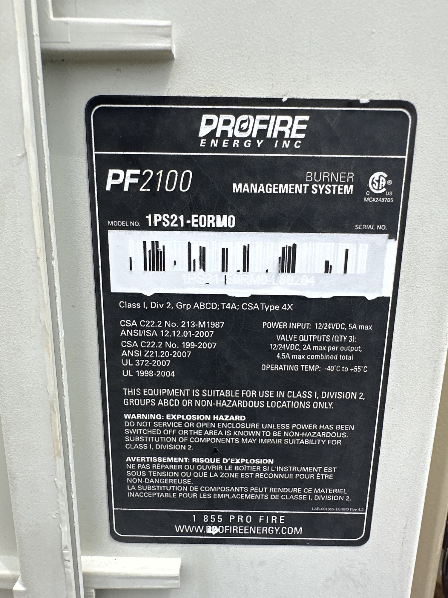 Manufacturer: Profire Combustion Inc.