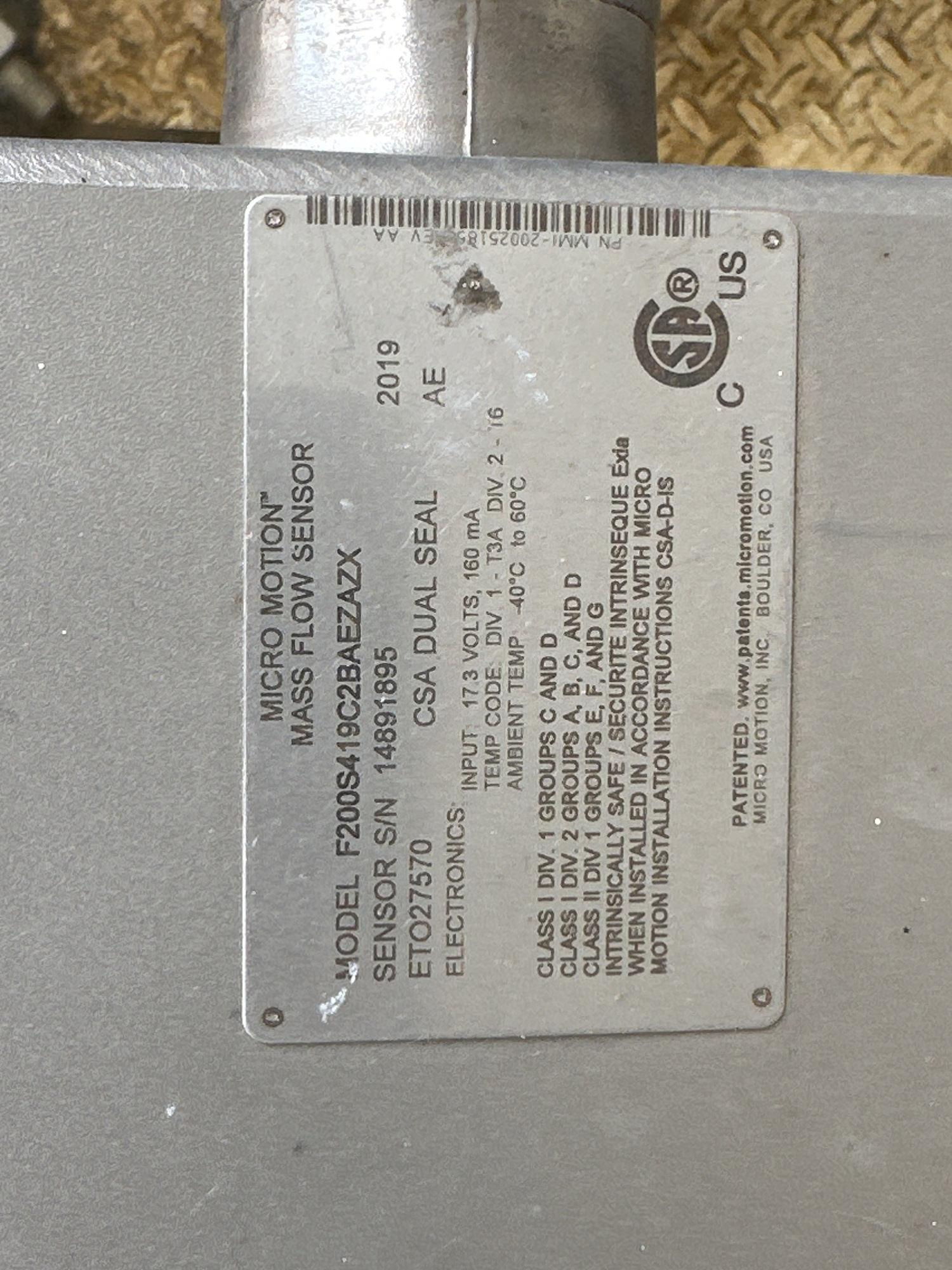 Manufacturer: Micro Motion