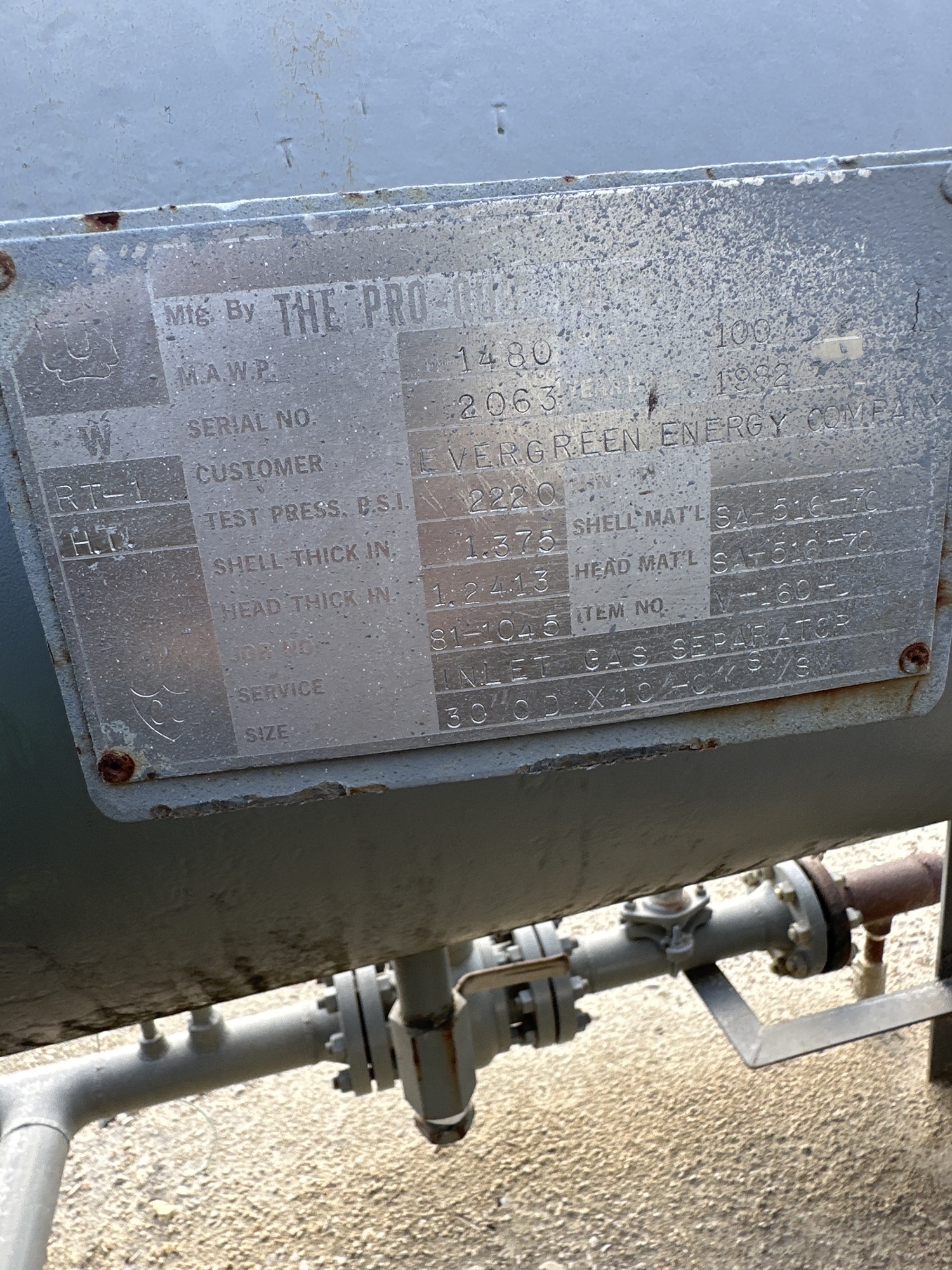 (re-catalog) 30" x 10' 1480 PSI Sweet Horizontal Separator