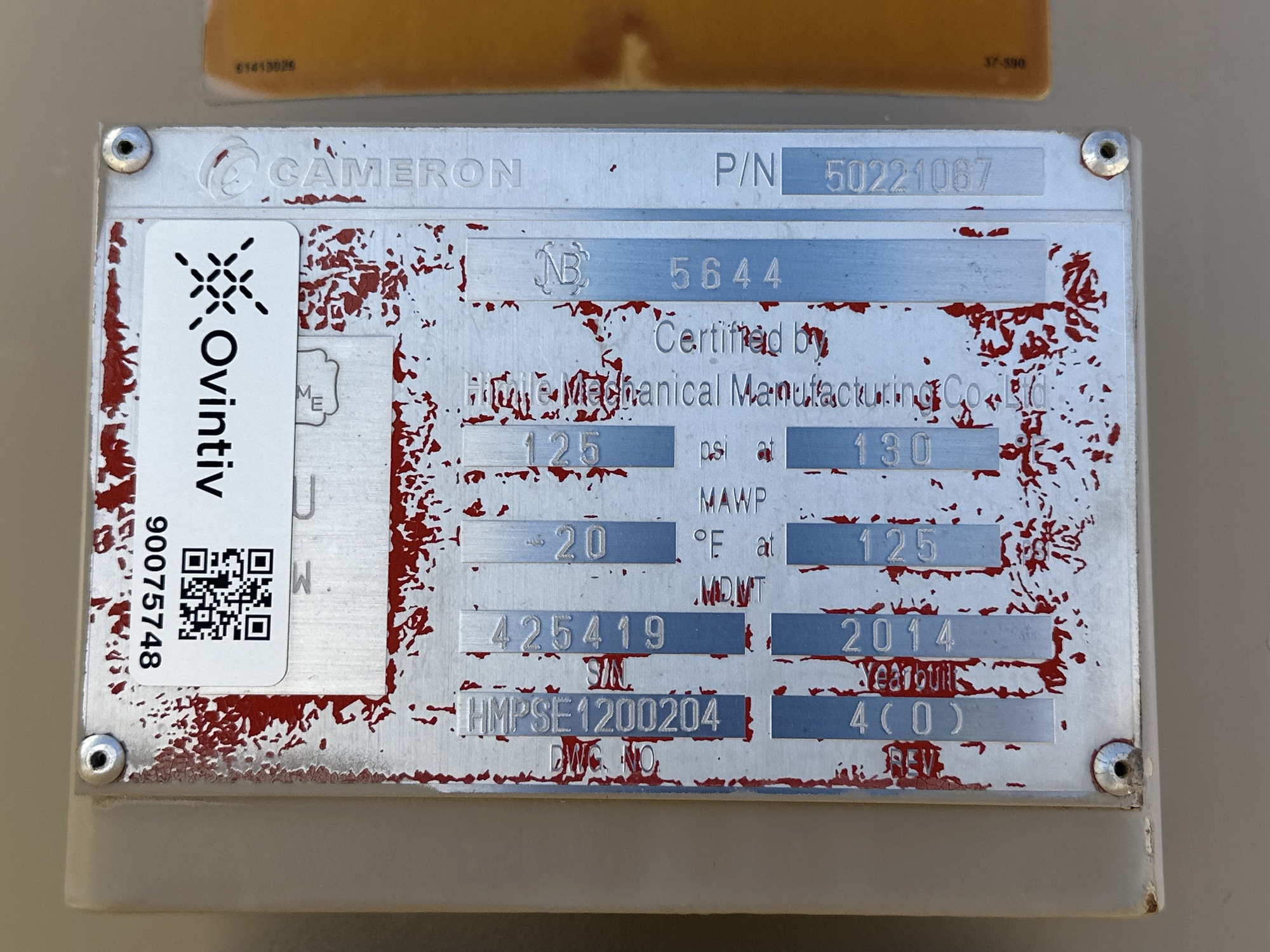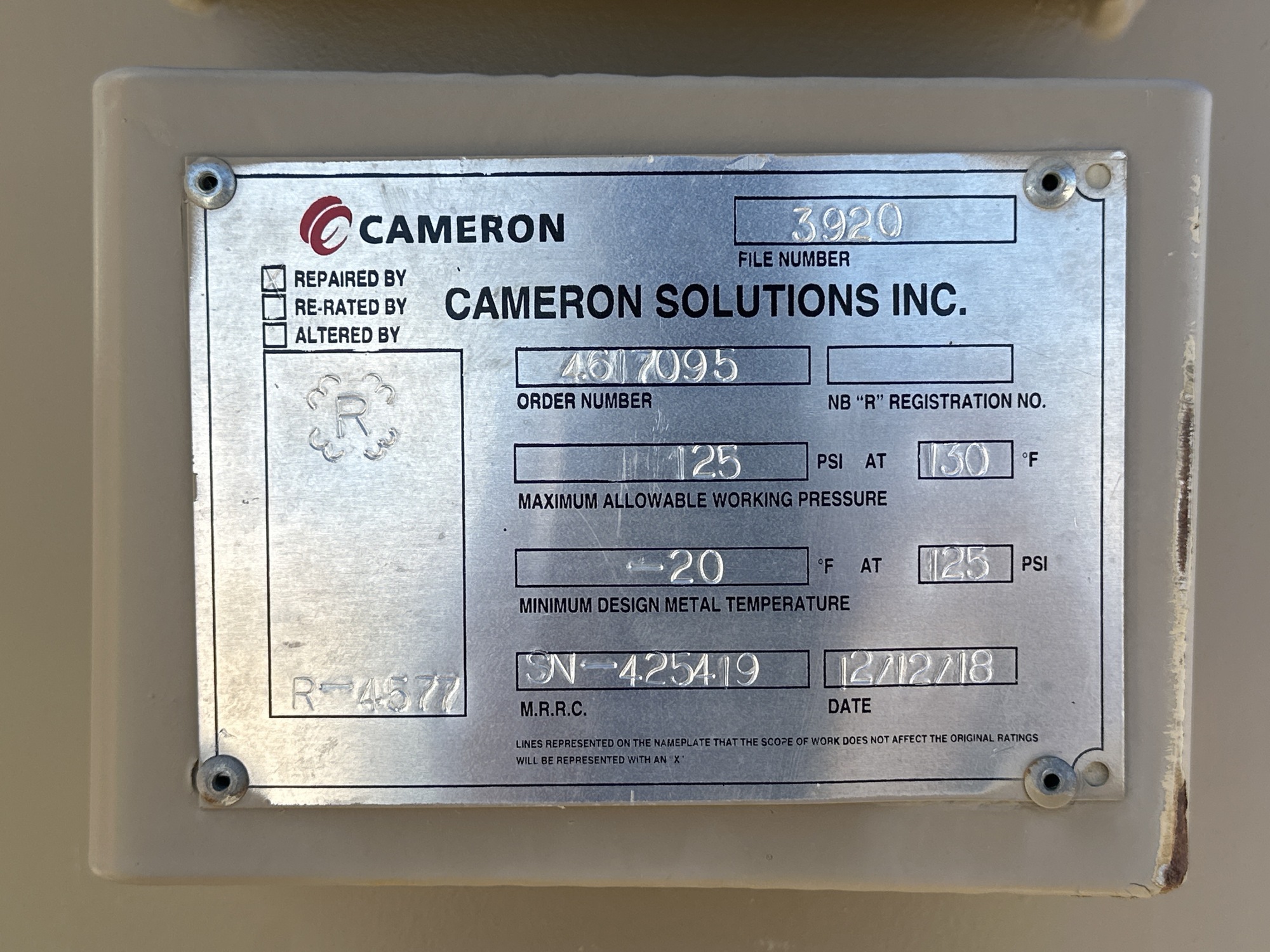 MAWP: 125 PSI at 130°F