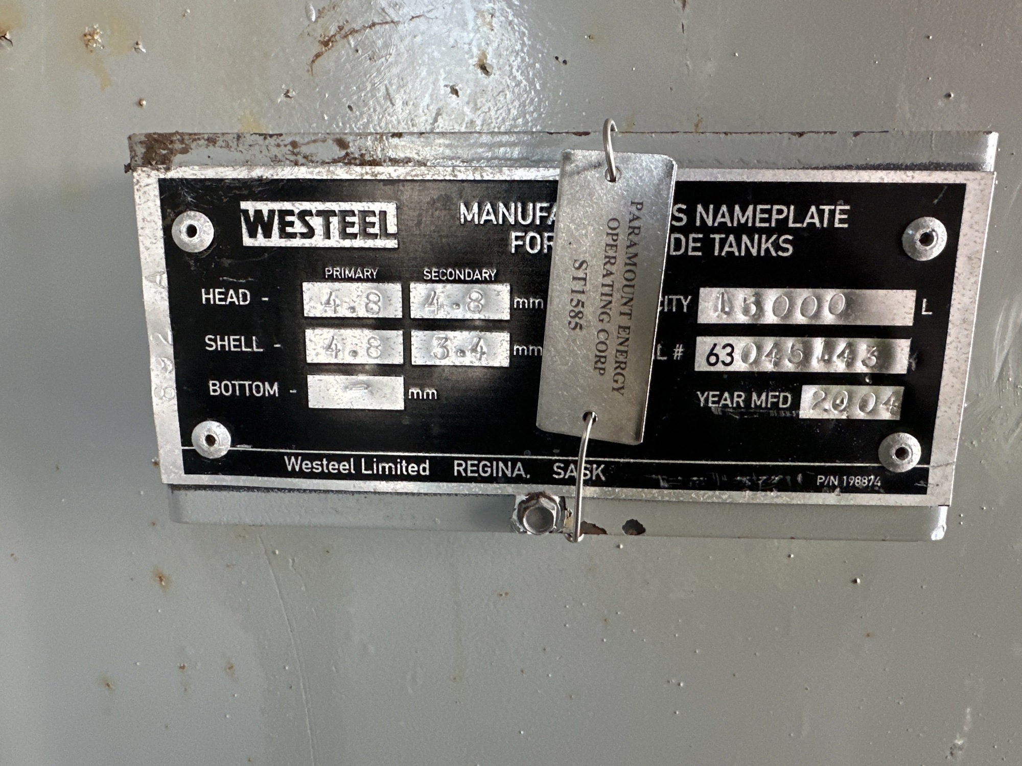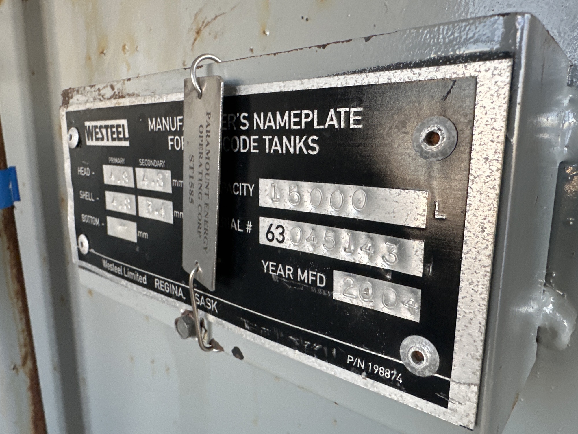 Capacity: 15,000L (94 BBL)