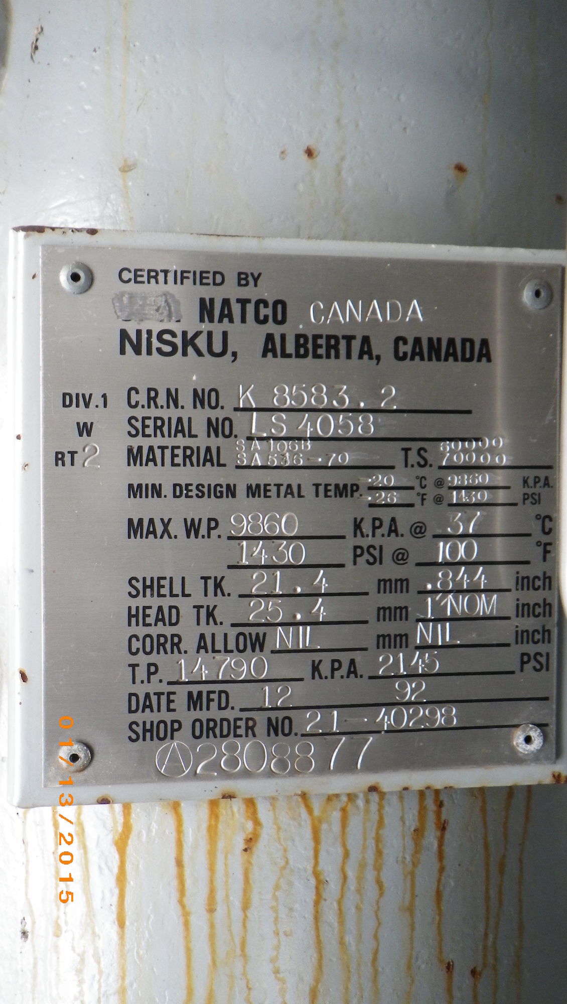 MAWP (kPa) 9860