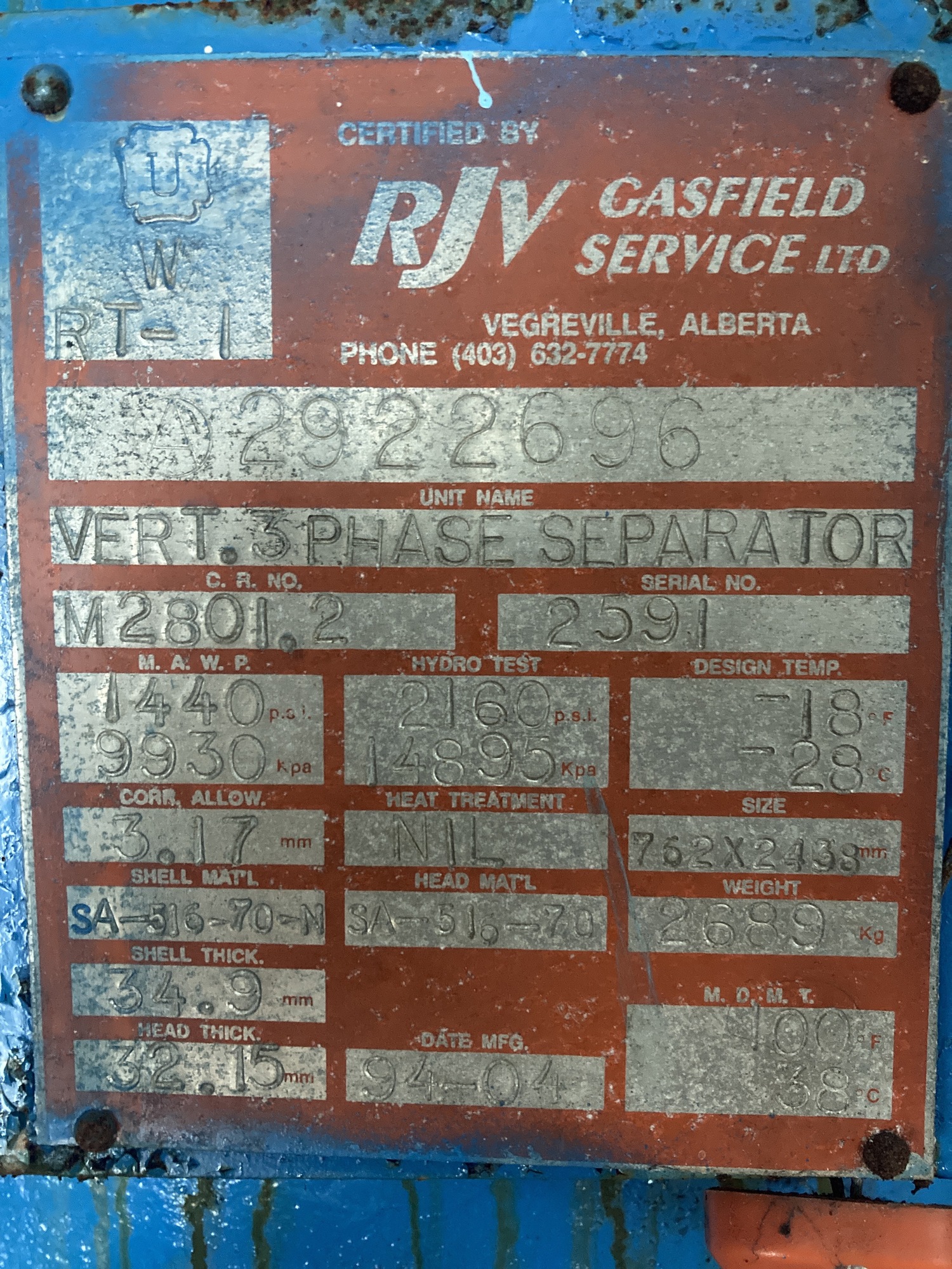 MAWP (PSI) 1440