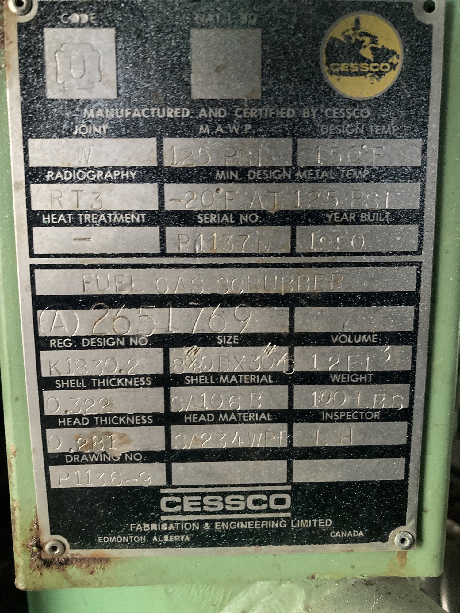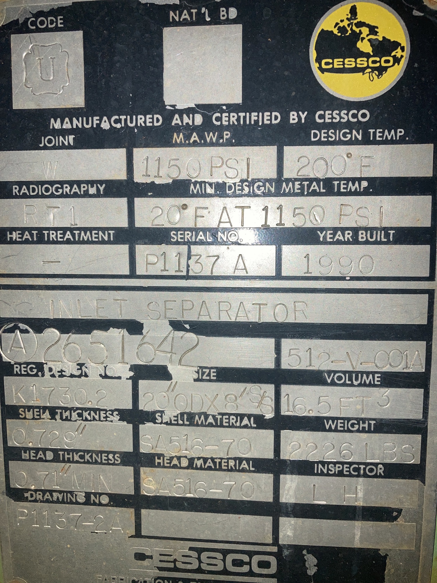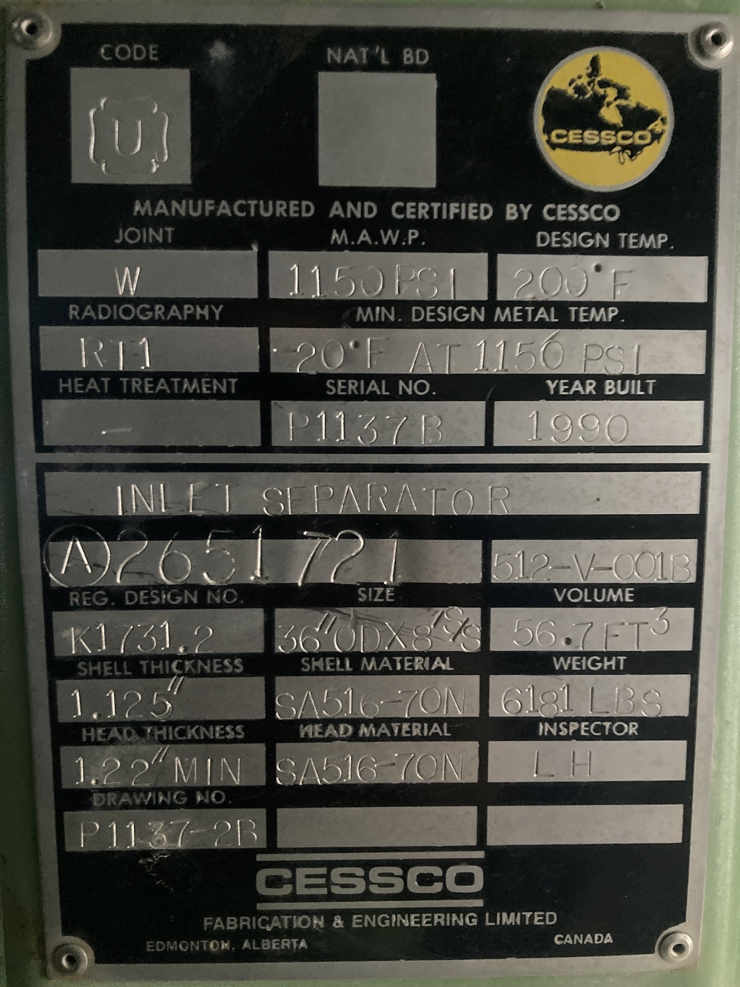 MAWP (PSI) 1150
