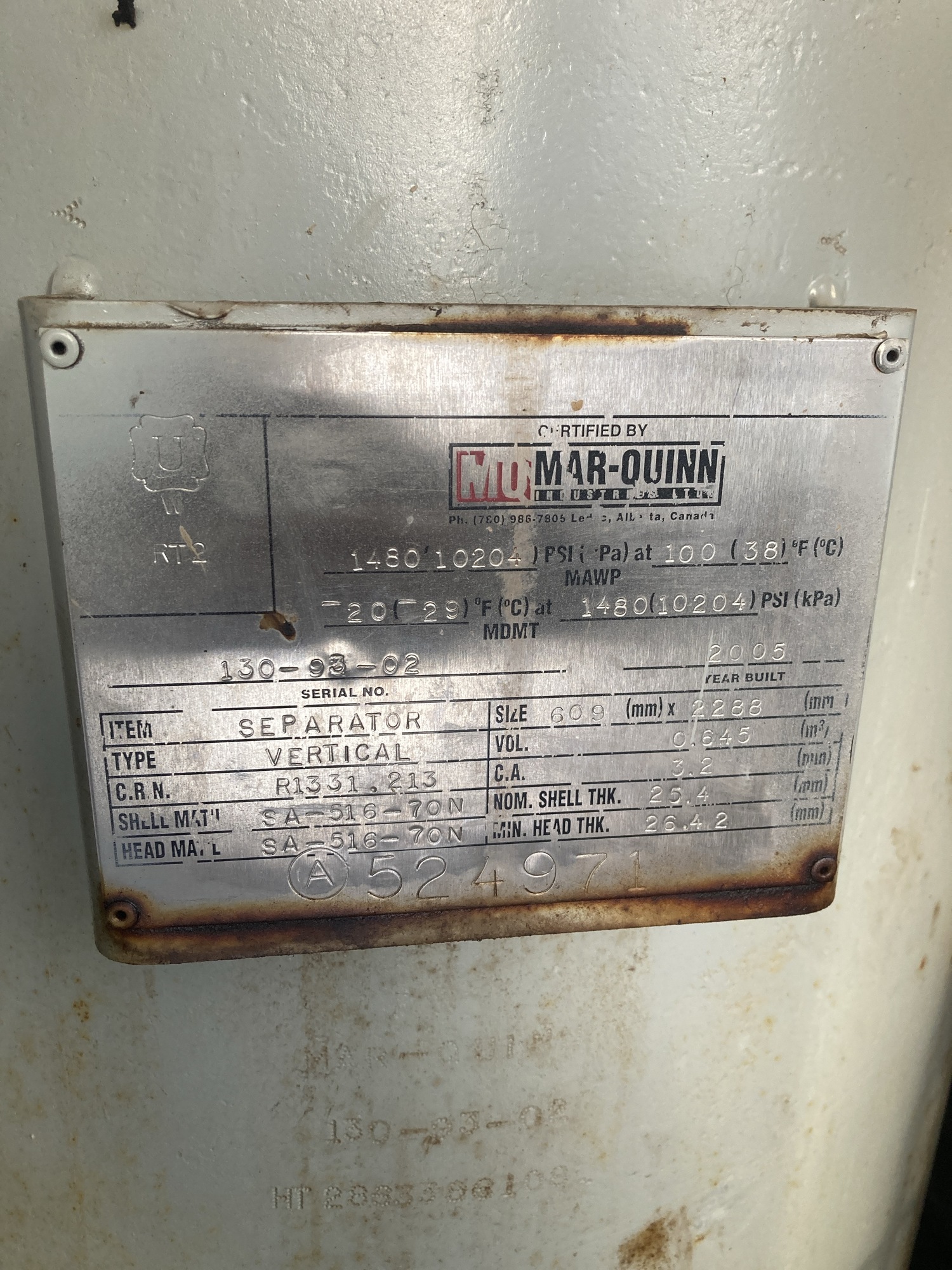 MAWP (PSI) 1480