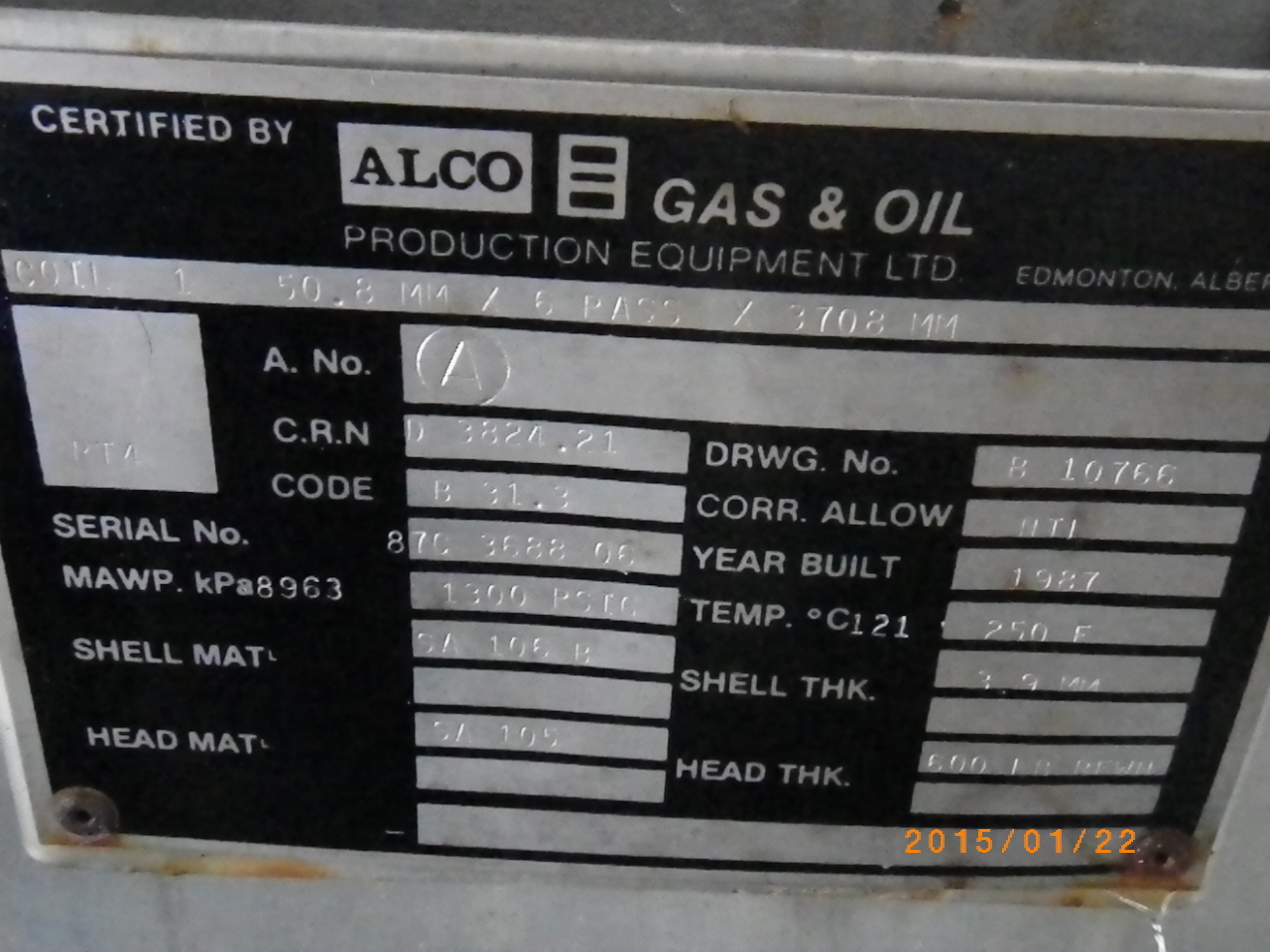 MAWP (PSI) 1300