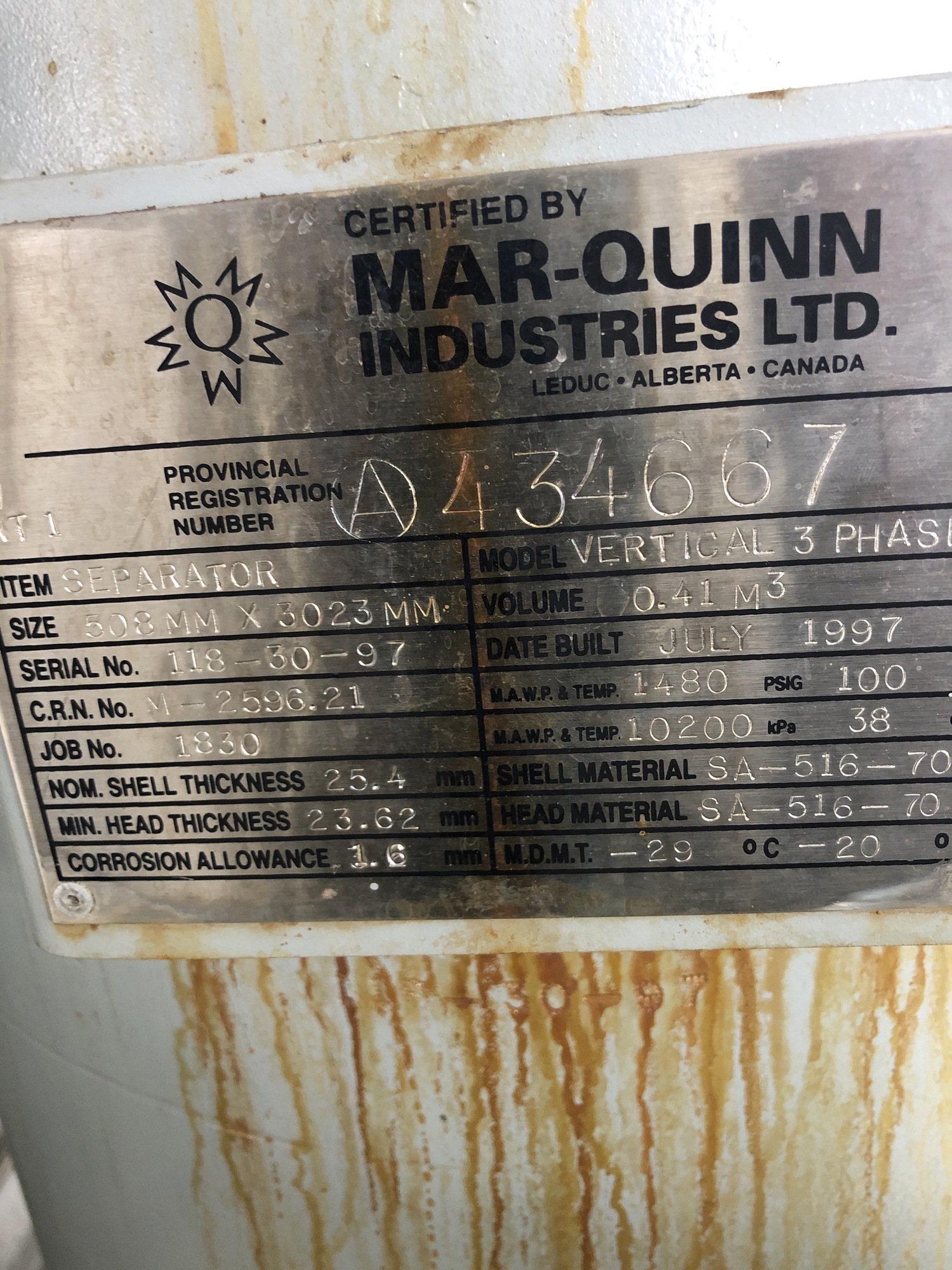 MAWP (PSI) 1480