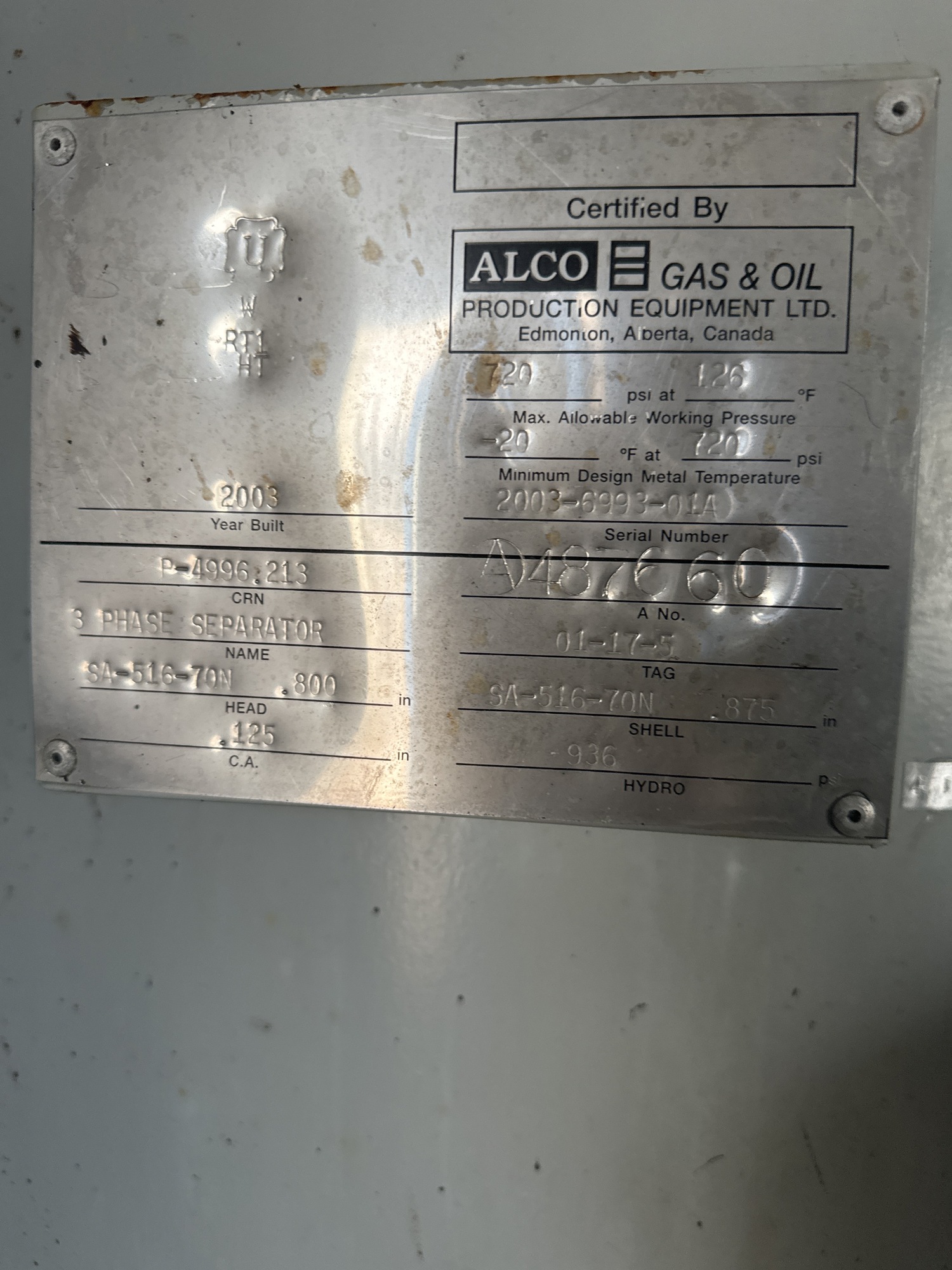 MAWP (PSI) 720