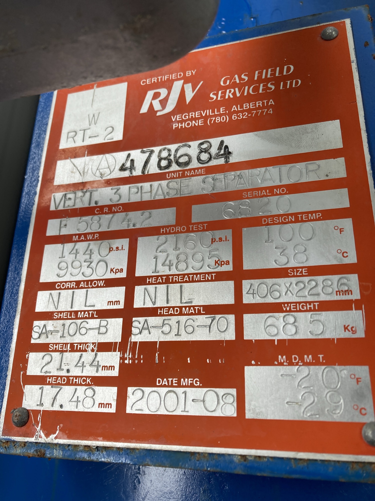 MAWP (PSI) 1440