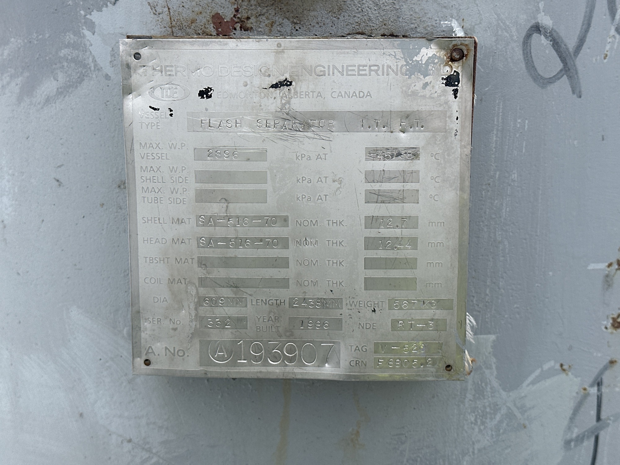 Shell MATL.: SA-516-70 - NOM THK: 12.7mm