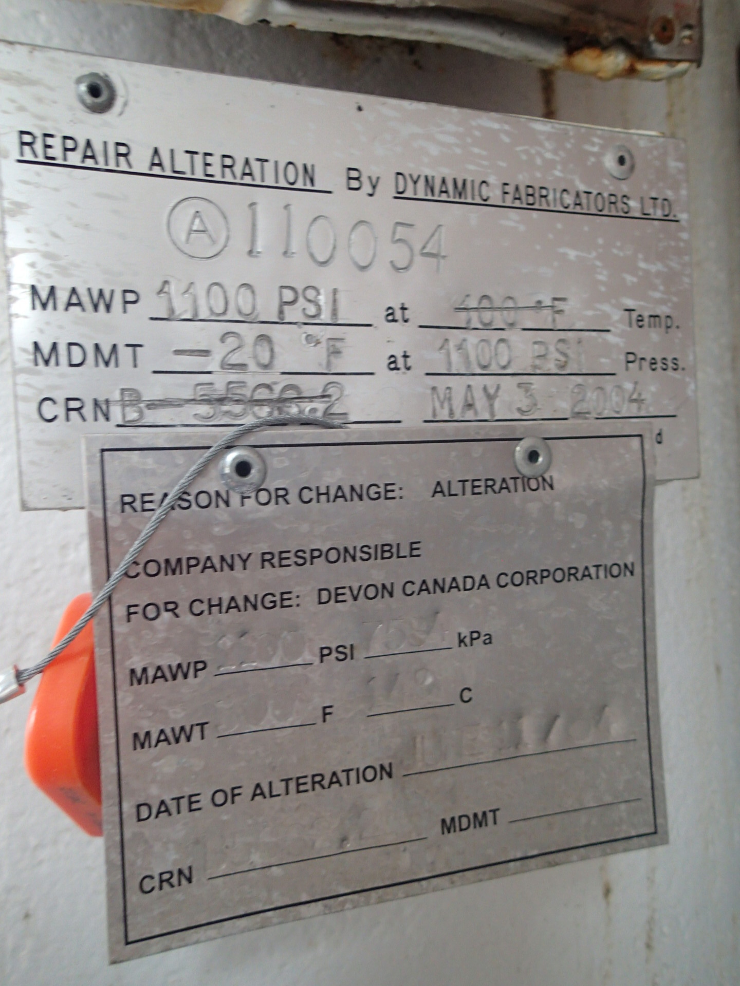 MAWP (PSI) 1100