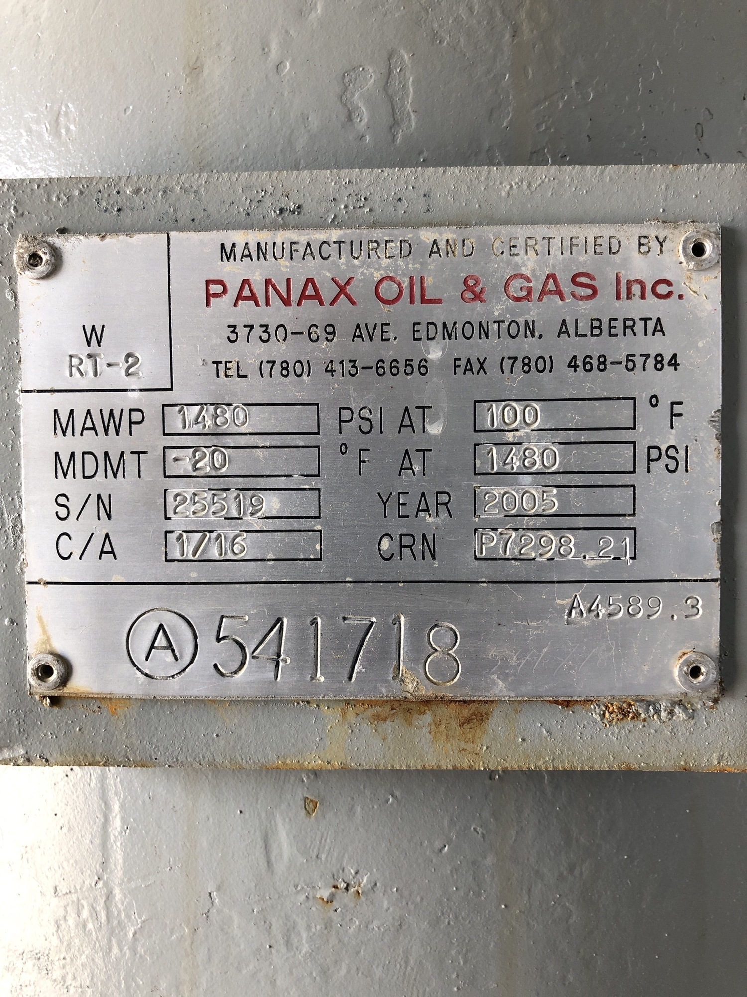 MAWP (PSI) 1480
