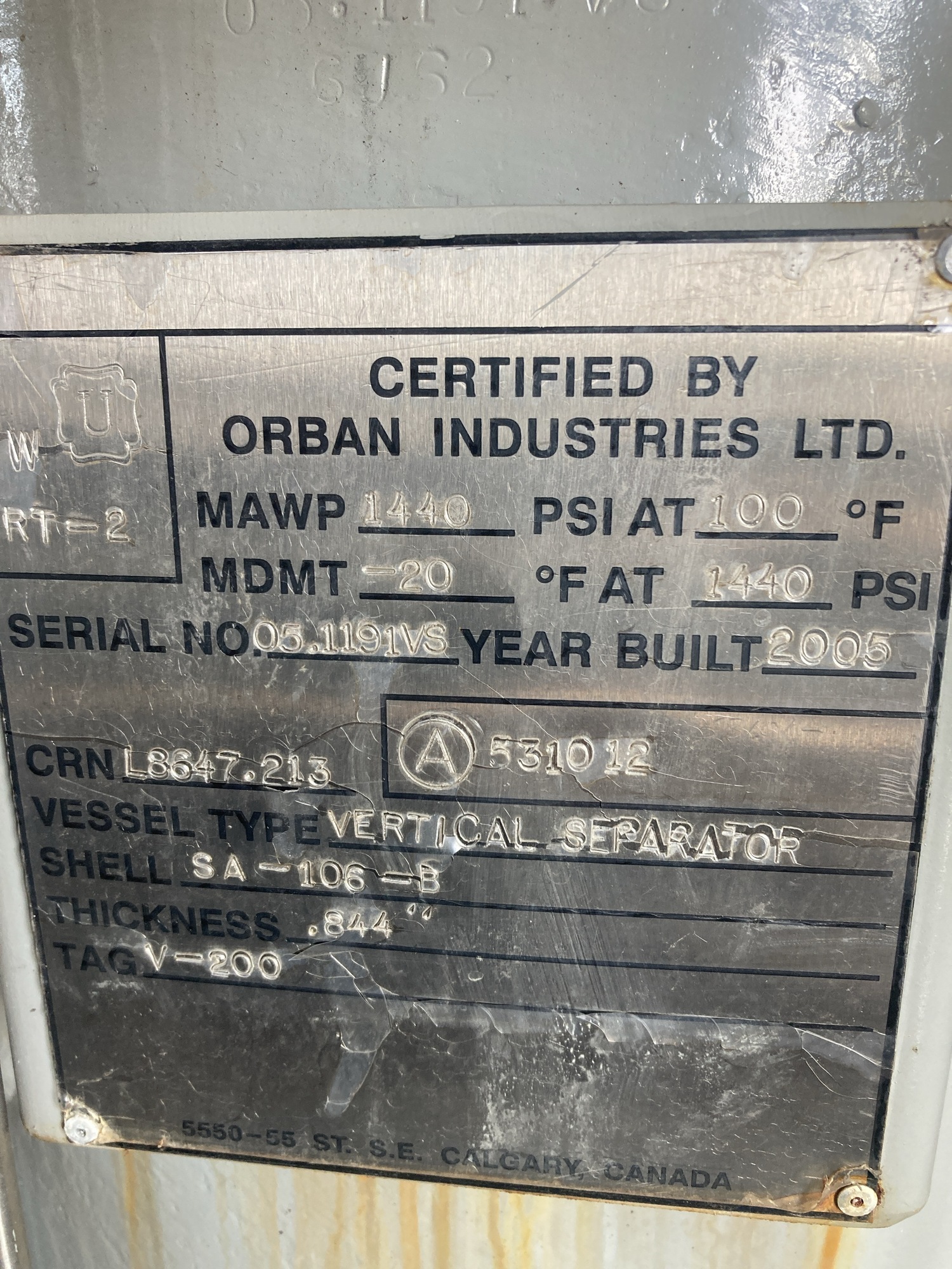 MAWP (PSI) 1440