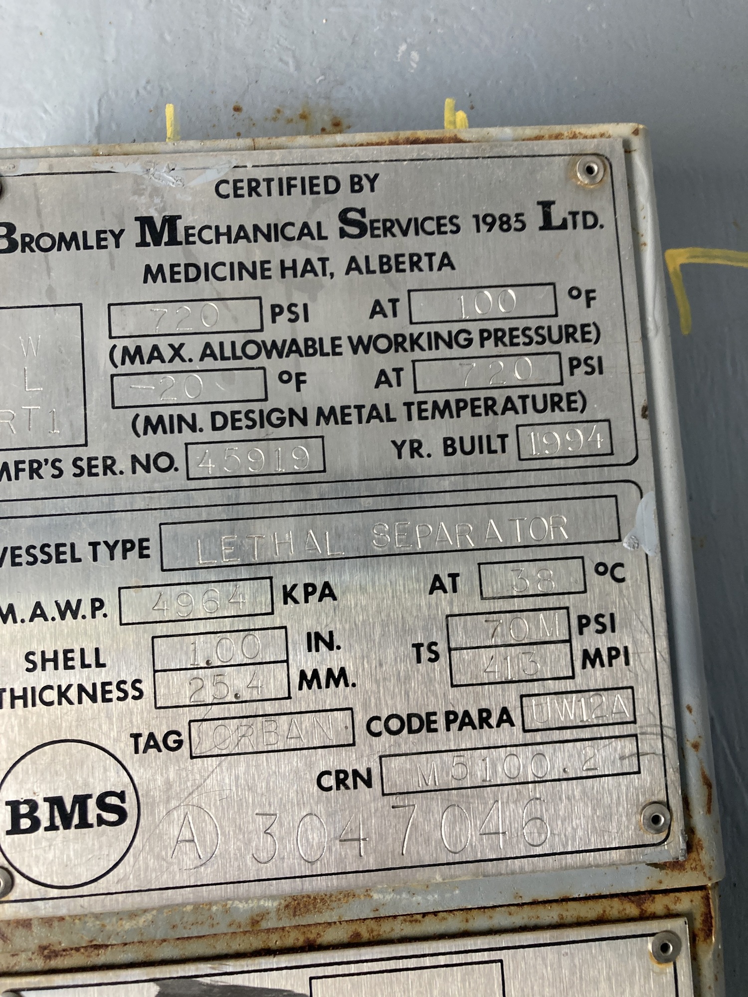 MAWP (PSI) 720