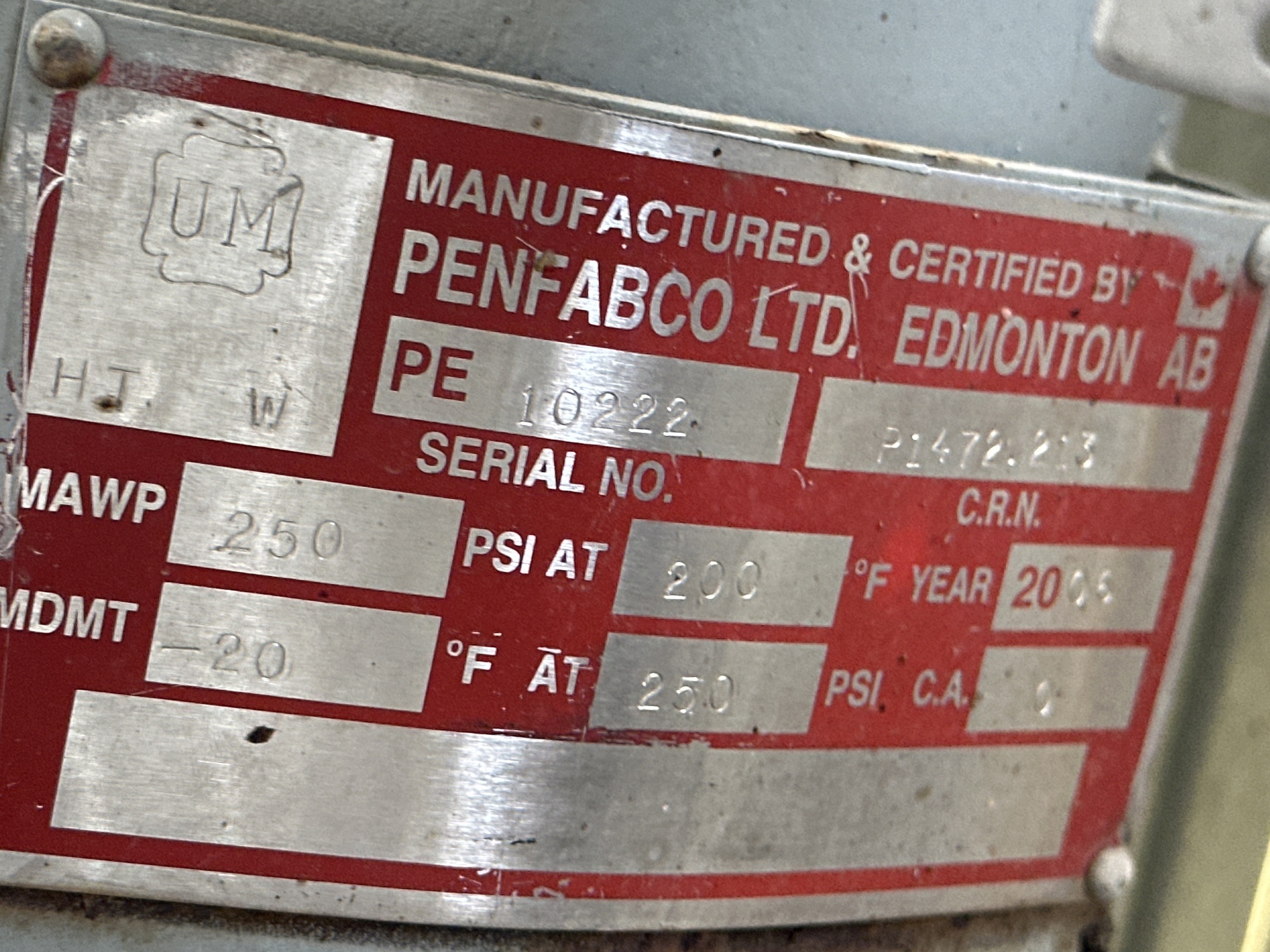 MAWP: 250 PSI @ 200 F
