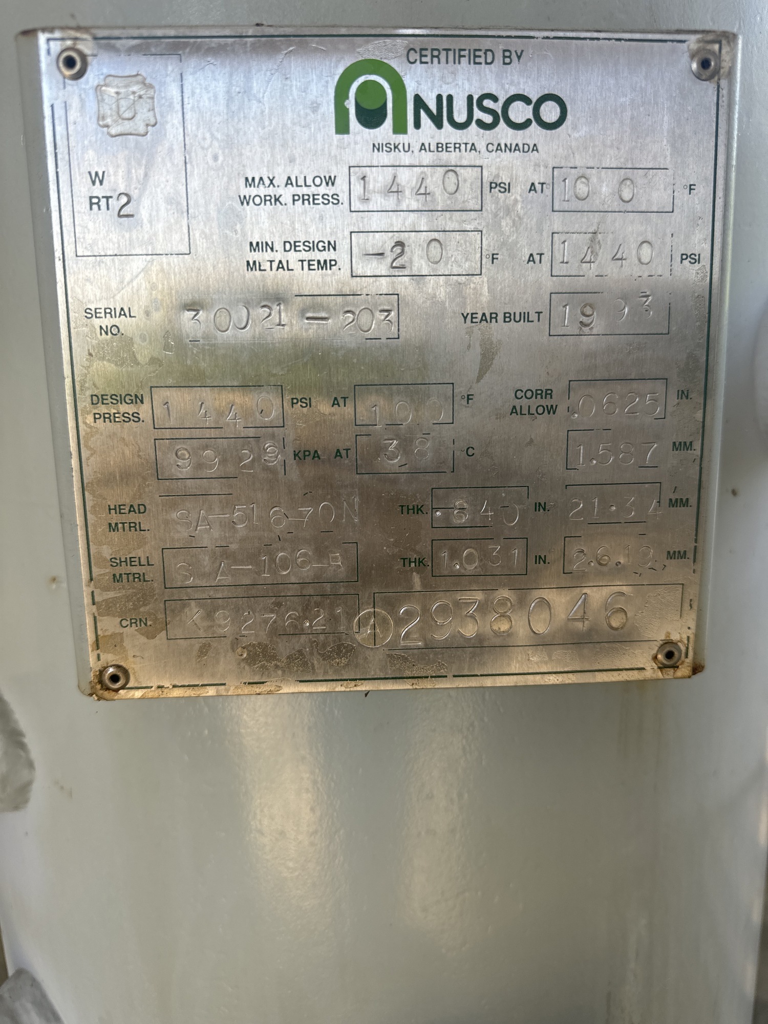 MAWP (PSI) 1440