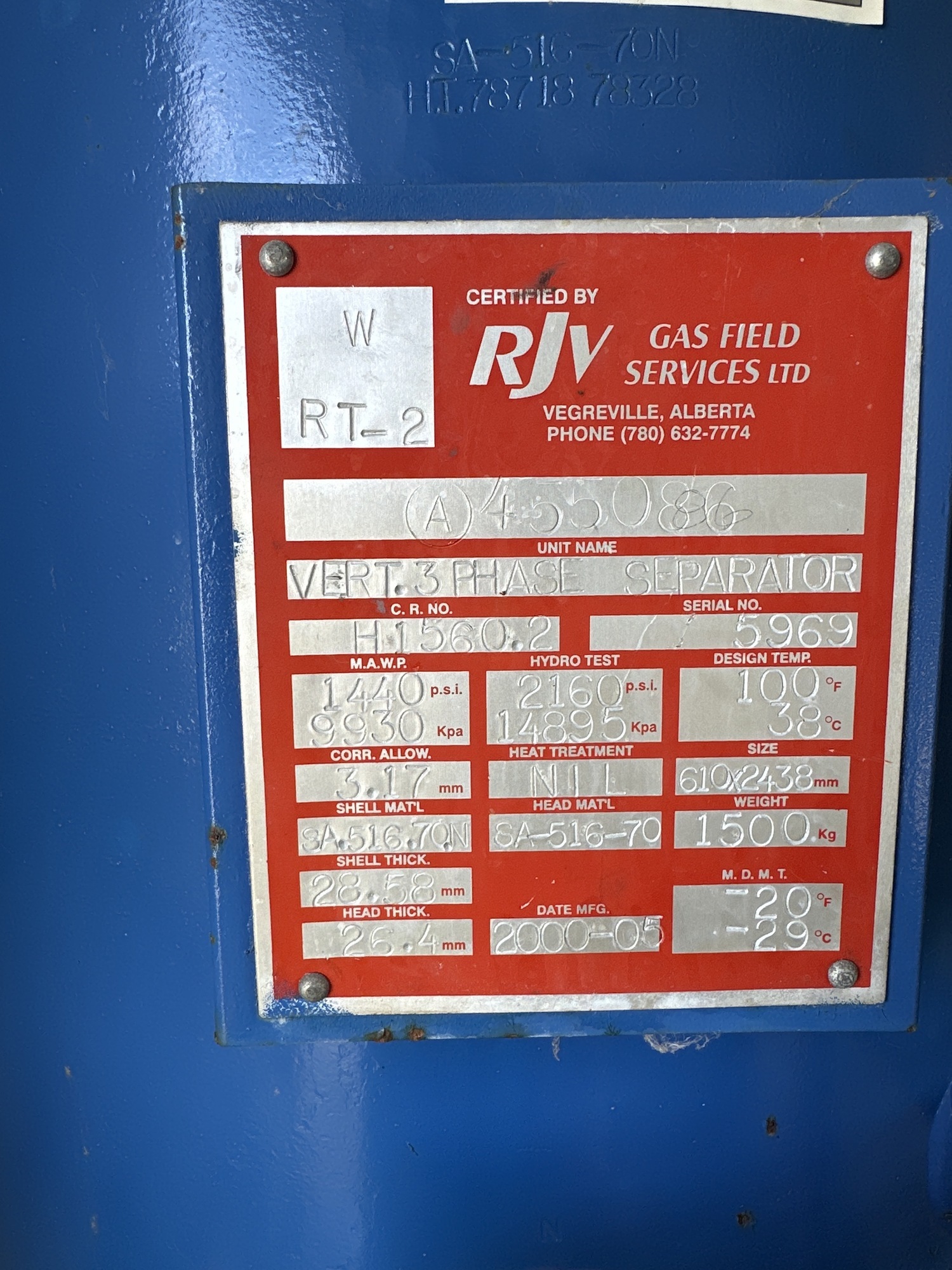MAWP (PSI) 1440