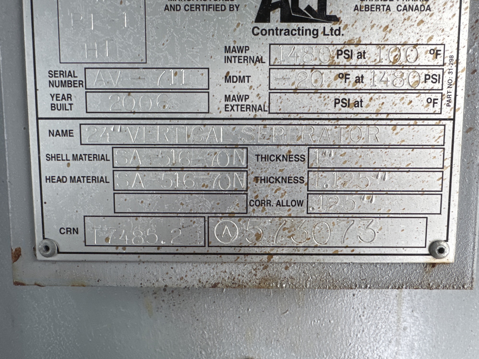 MAWP (PSI) 1480