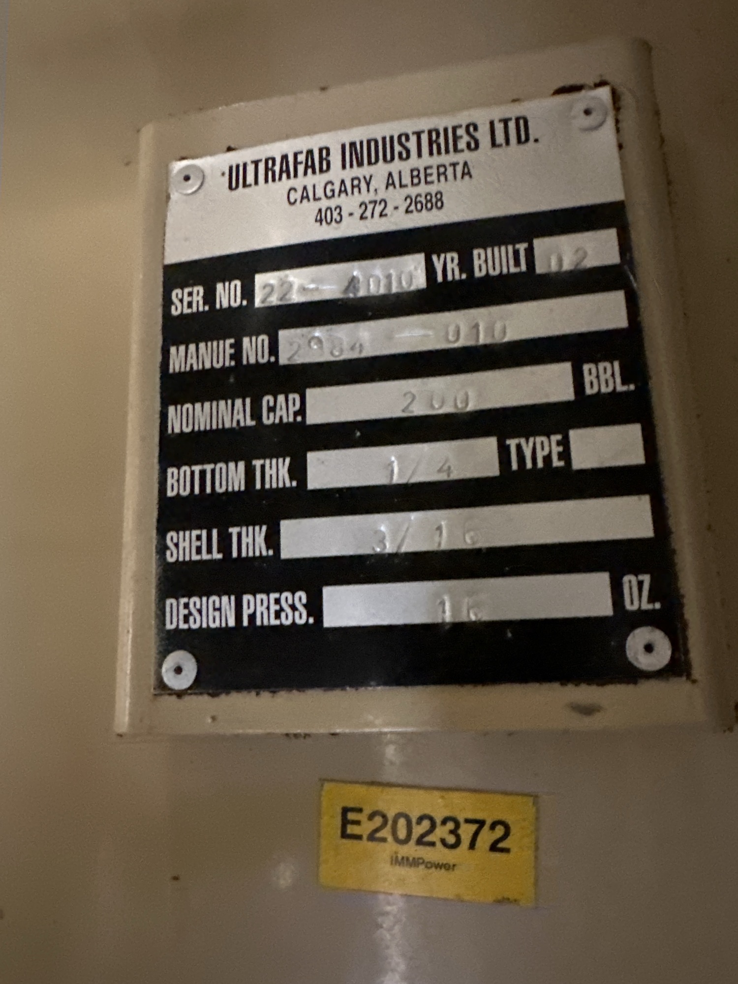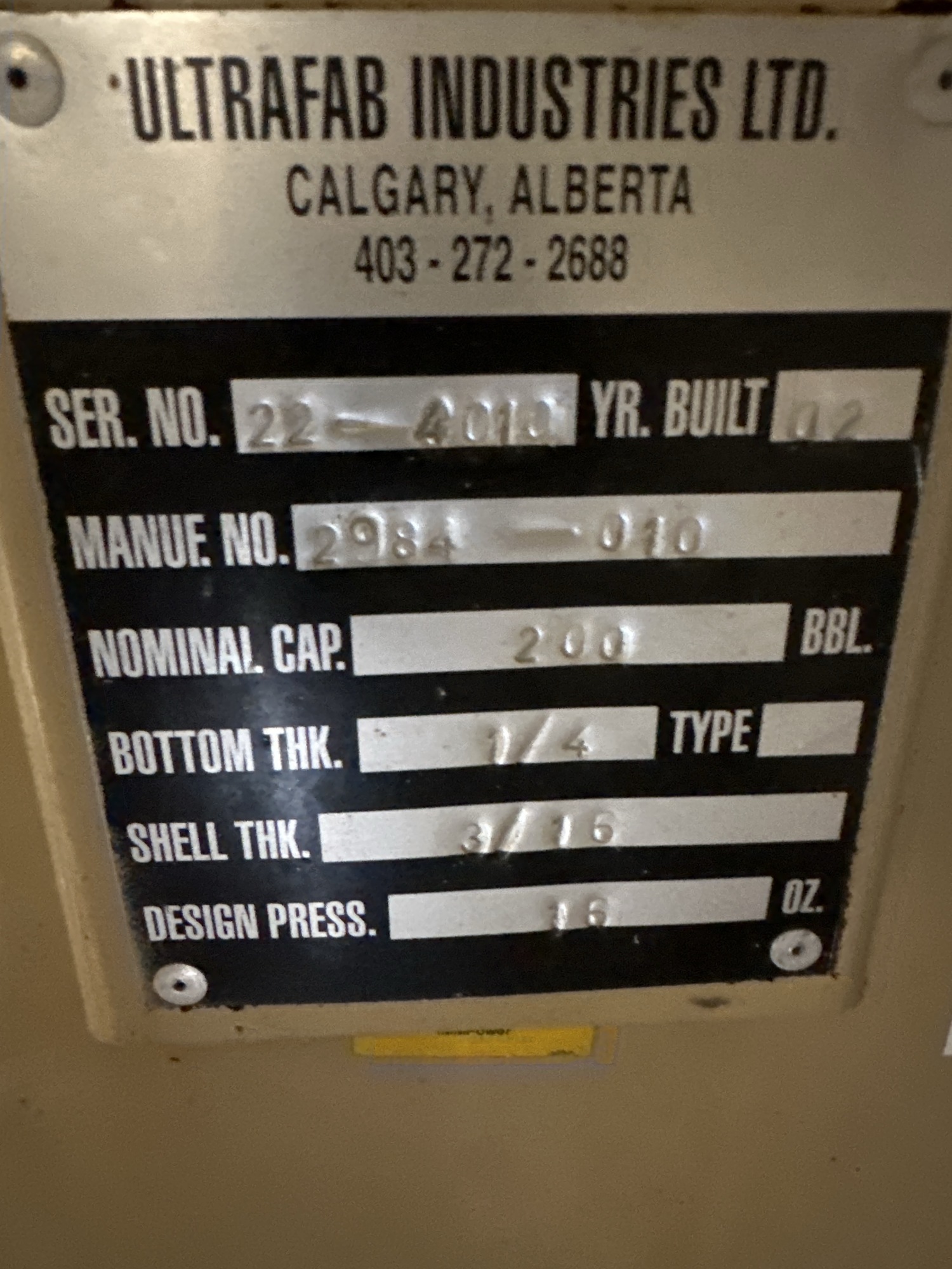 16" x 5' 1480 PSI Sweet Separator Package w/200 BBL 16 Oz Storage Tank