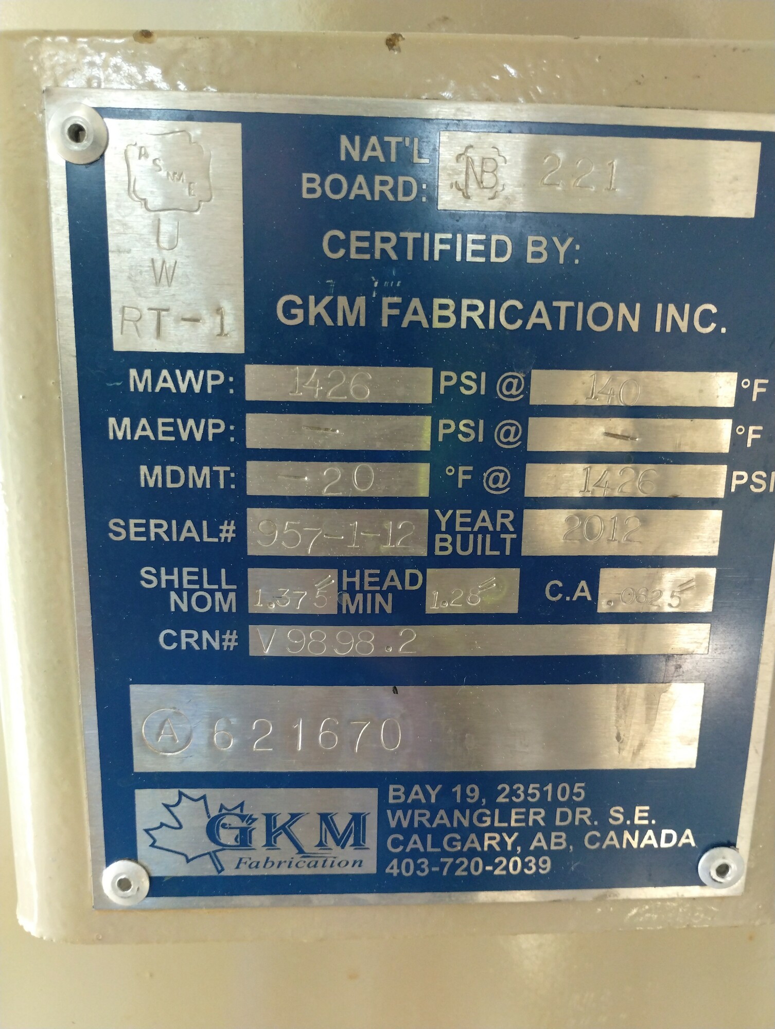 MAWP (PSI) 1426