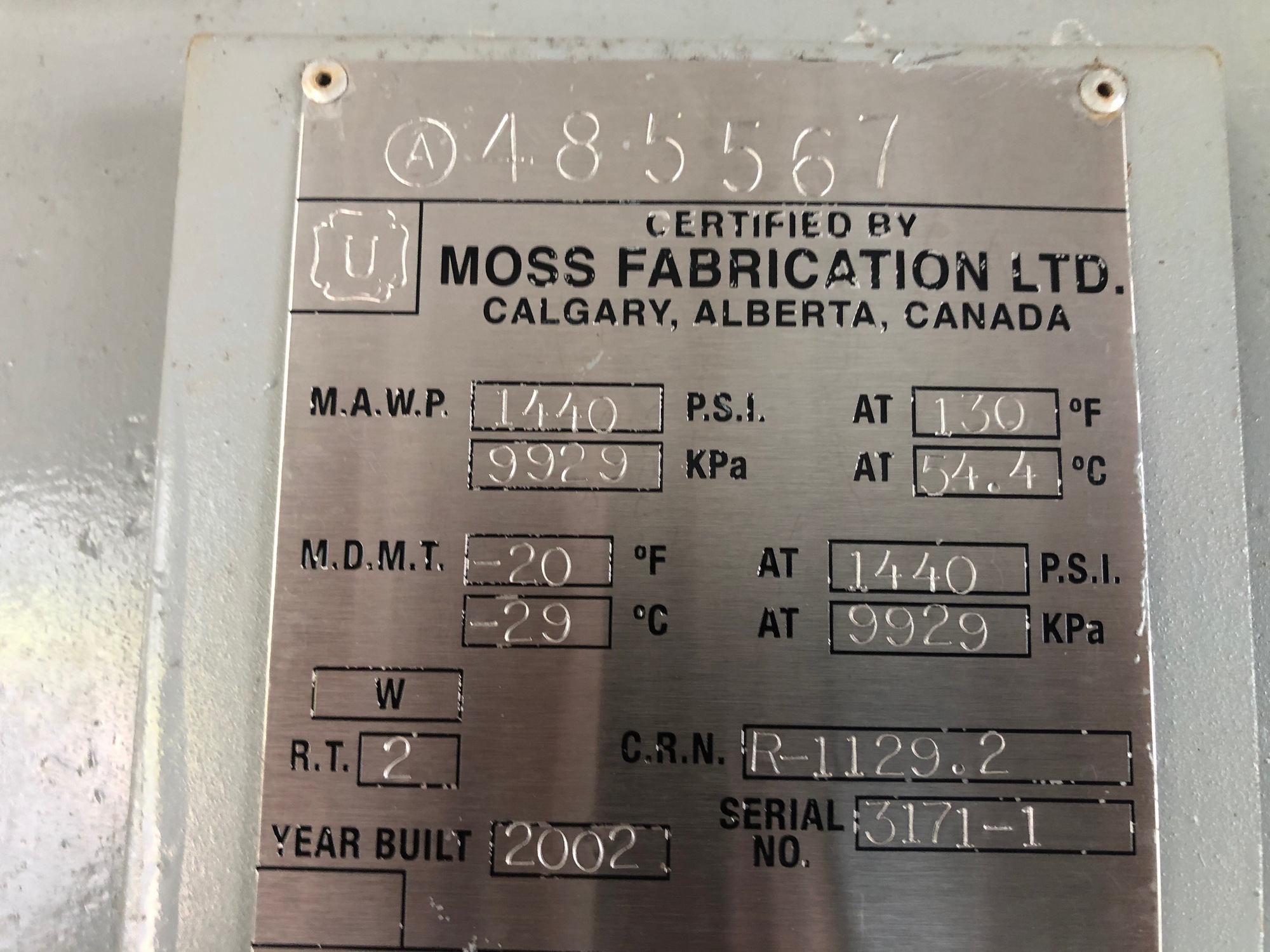 MAWP (PSI) 1440