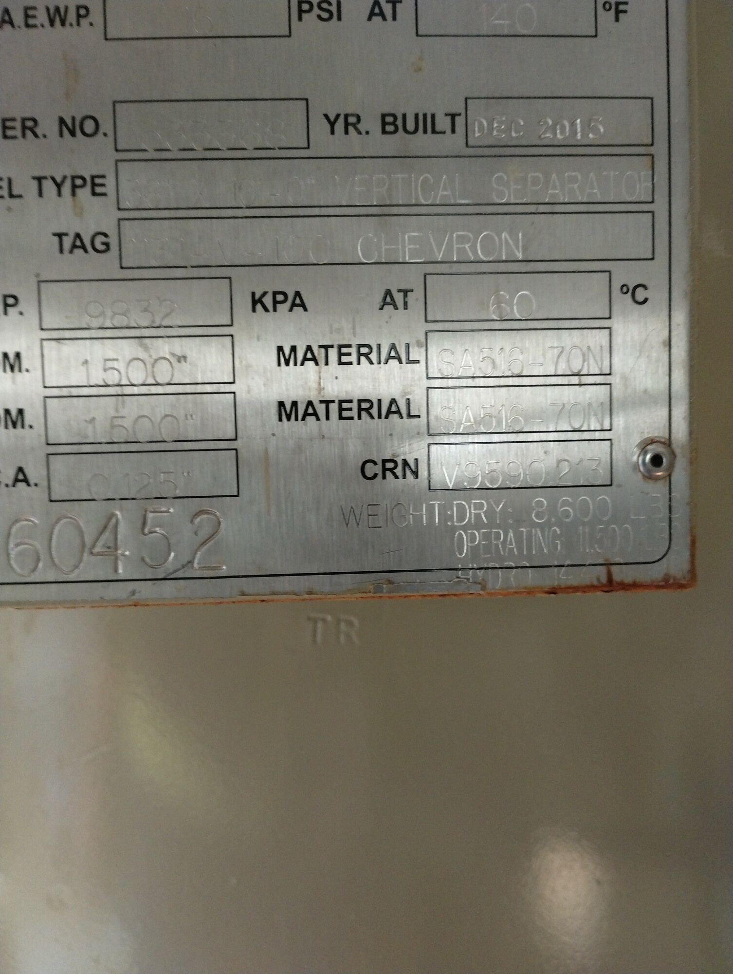 MAWP (PSI) 0