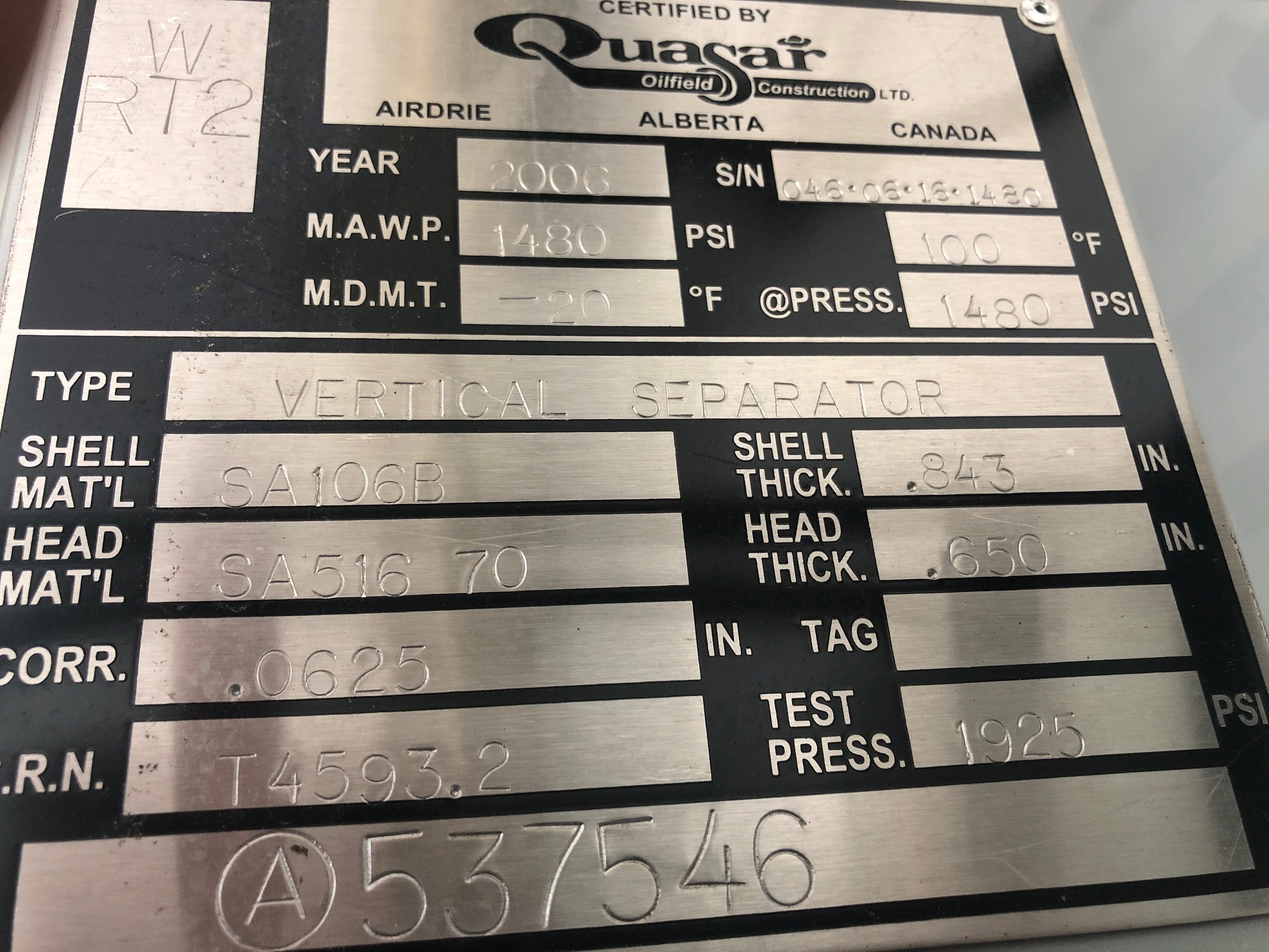 MAWP (PSI) 1480