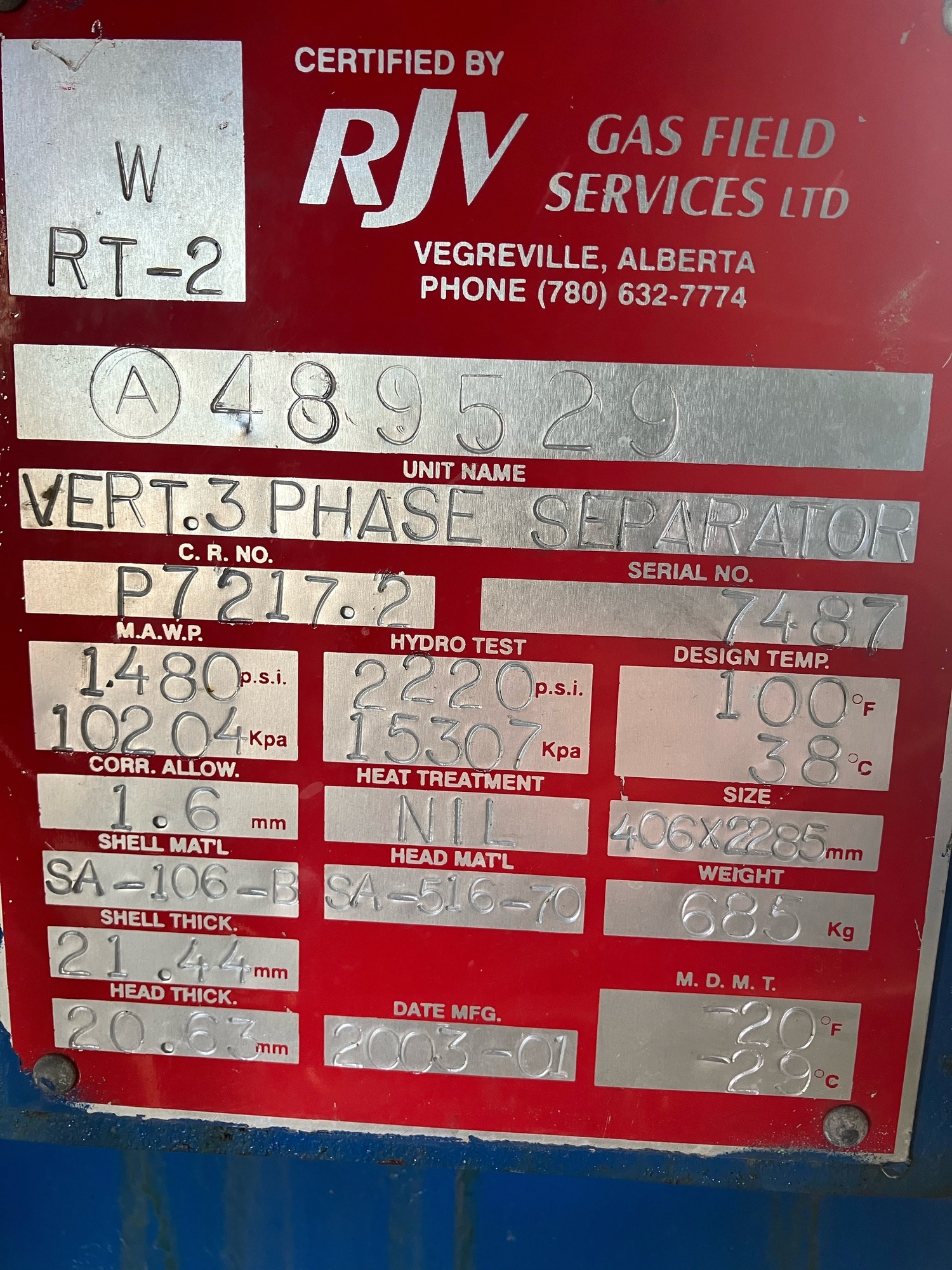 MAWP (PSI) 1480