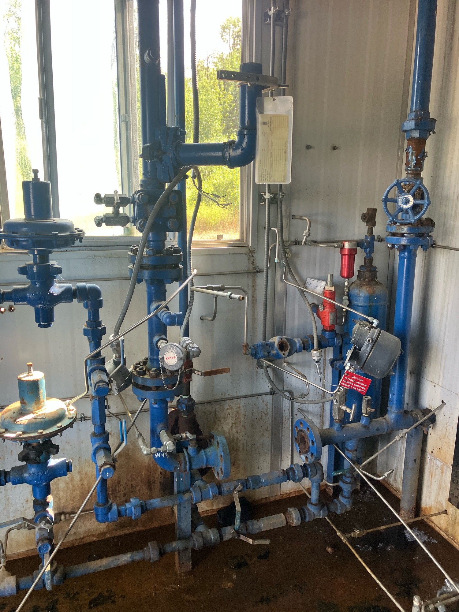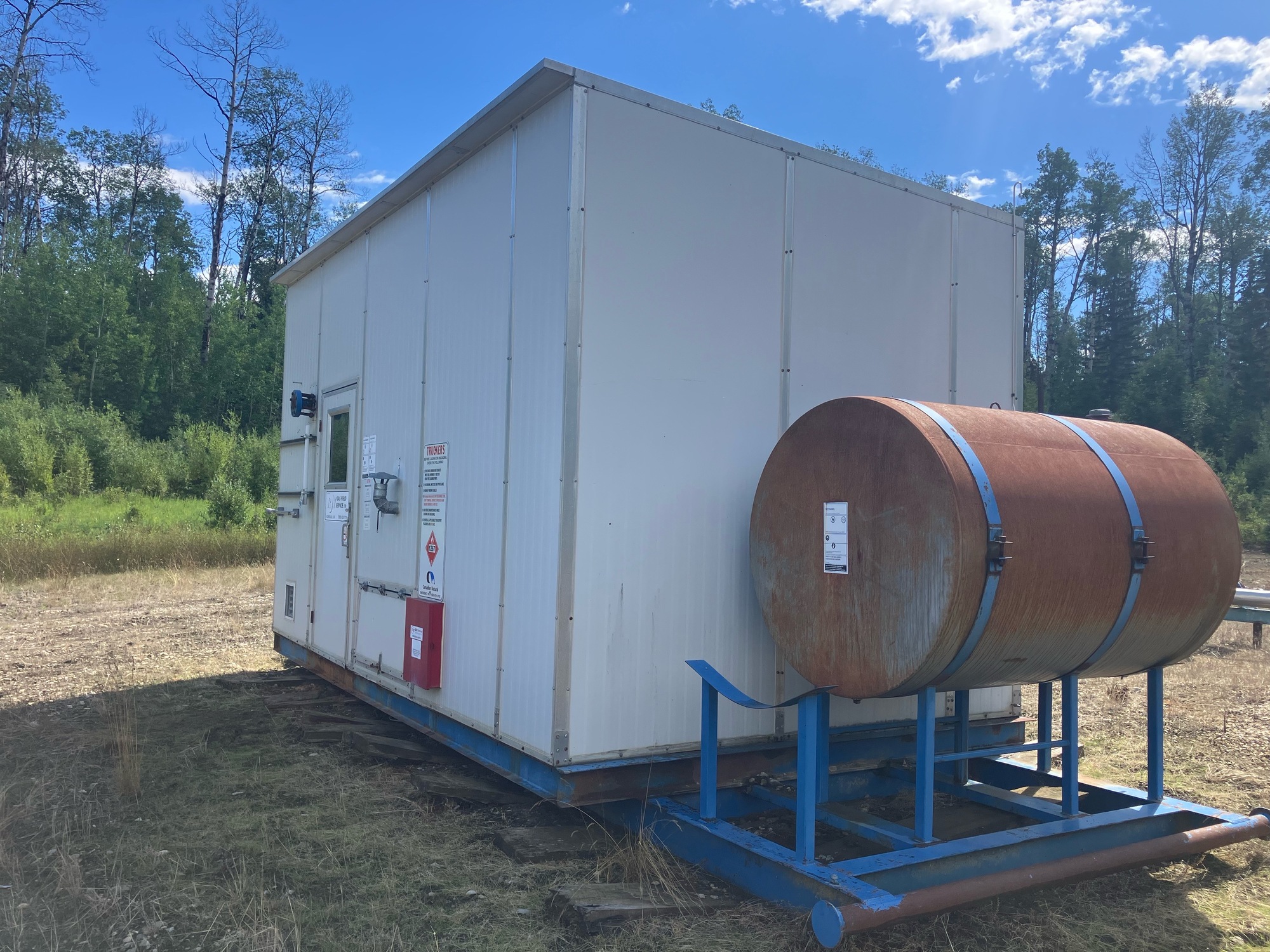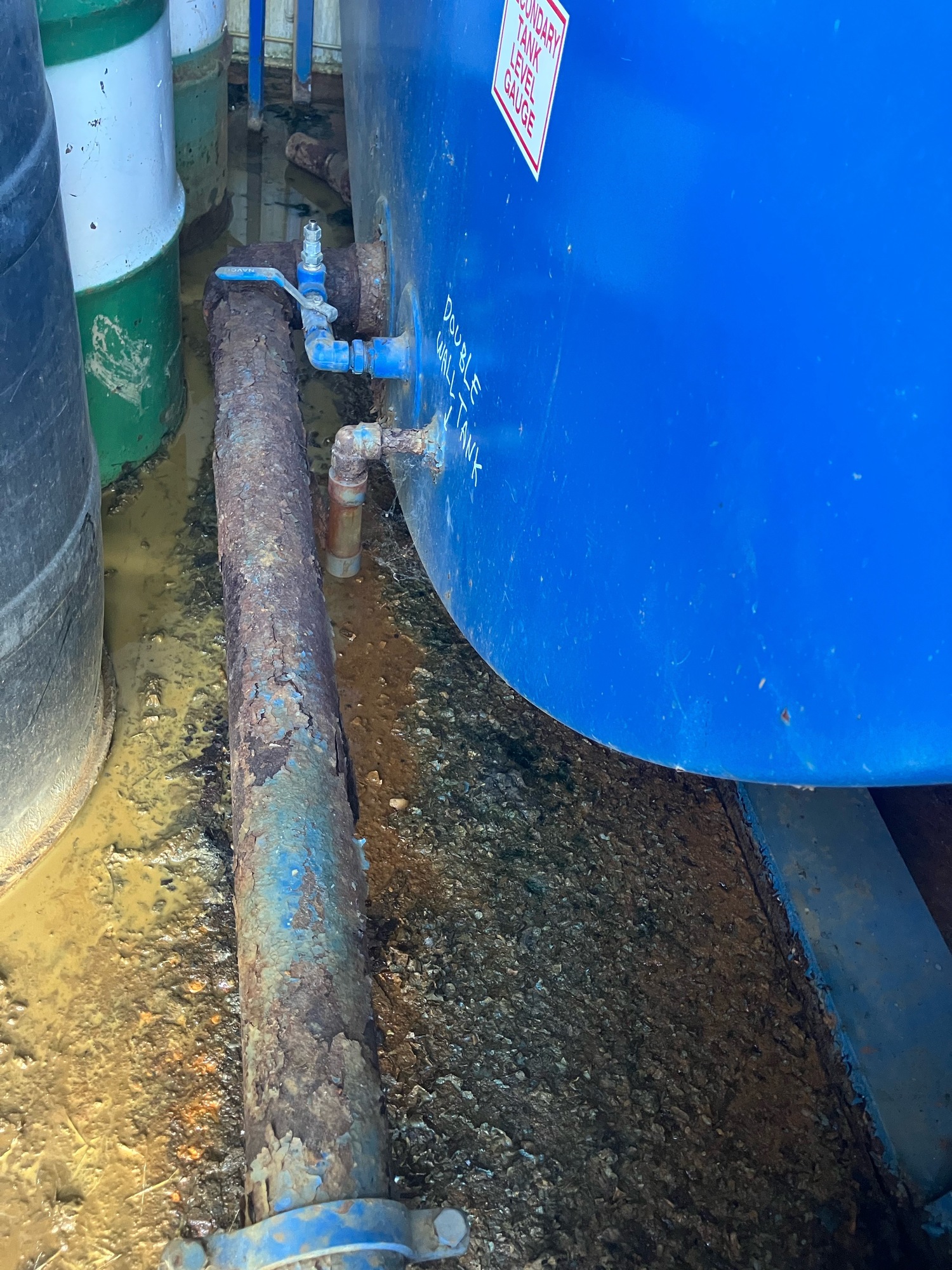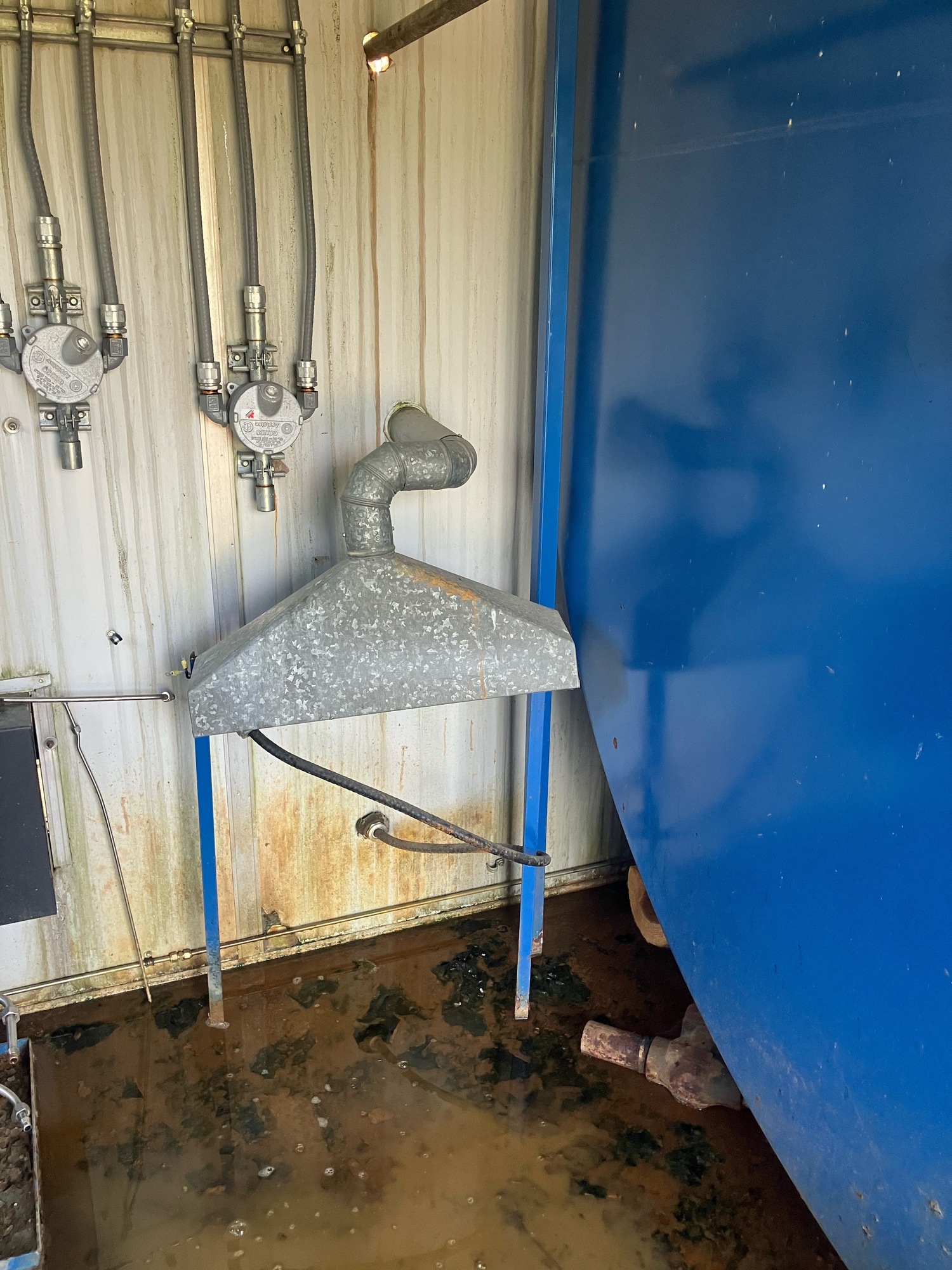 Sep shack some rust on floor & tank piping. Pkg is disconnected