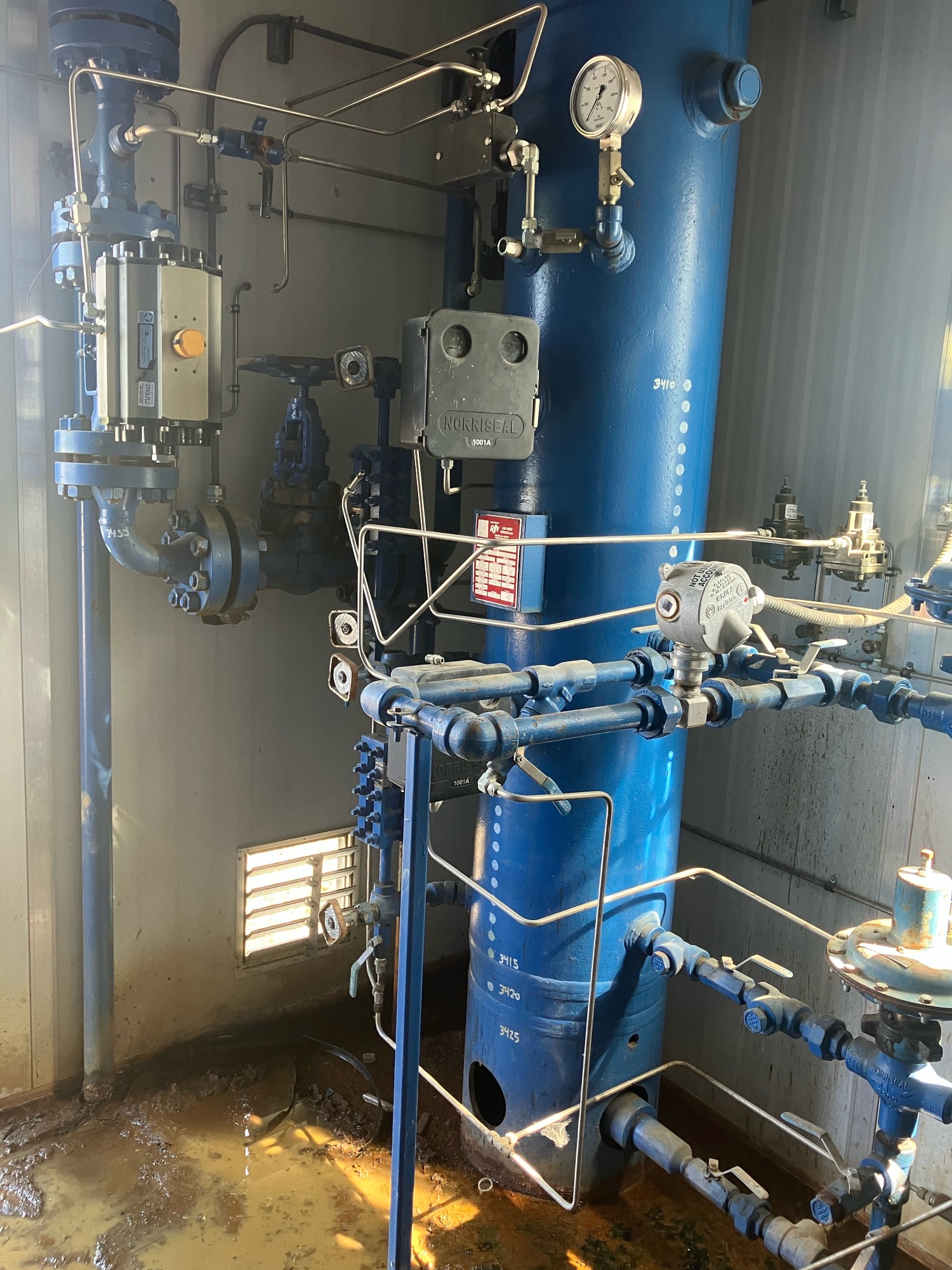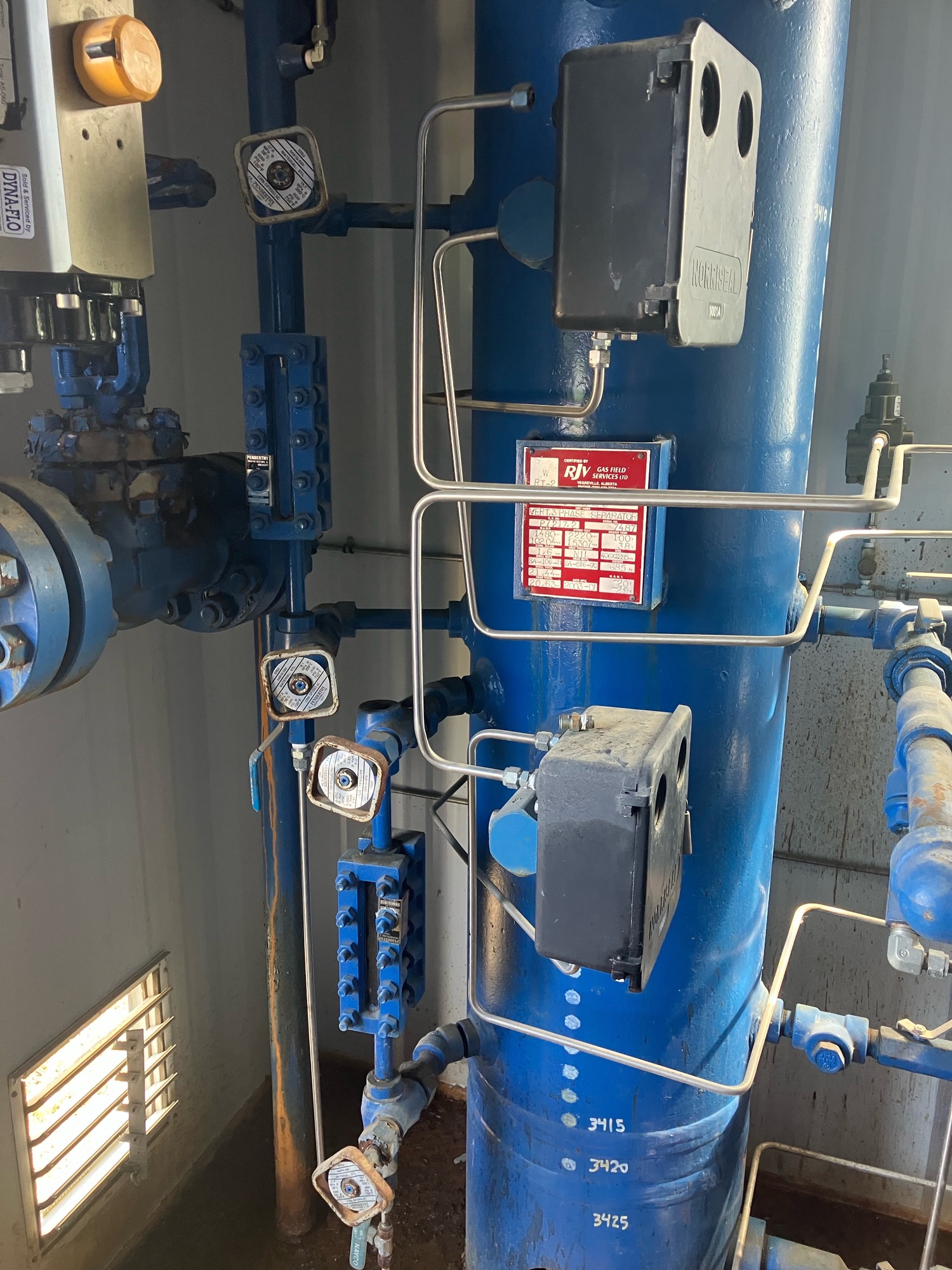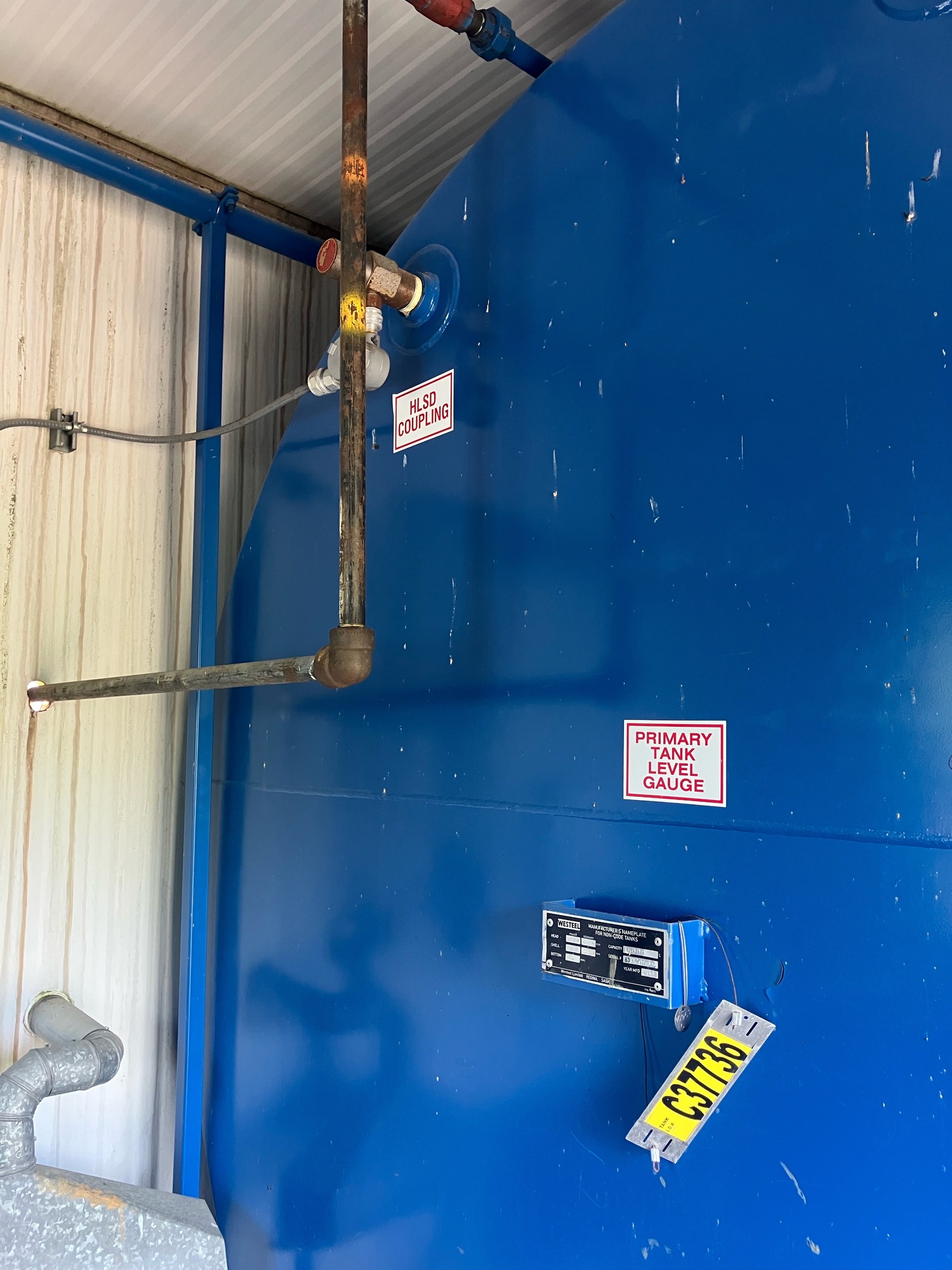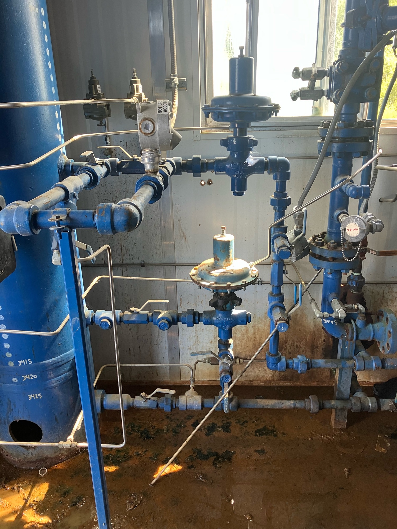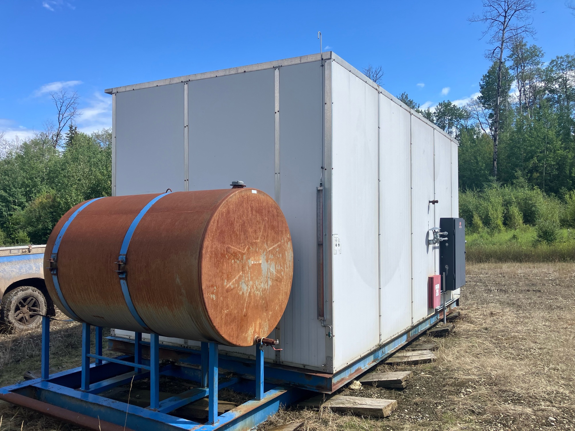 Sep shack some rust on floor & tank piping. Pkg is disconnected