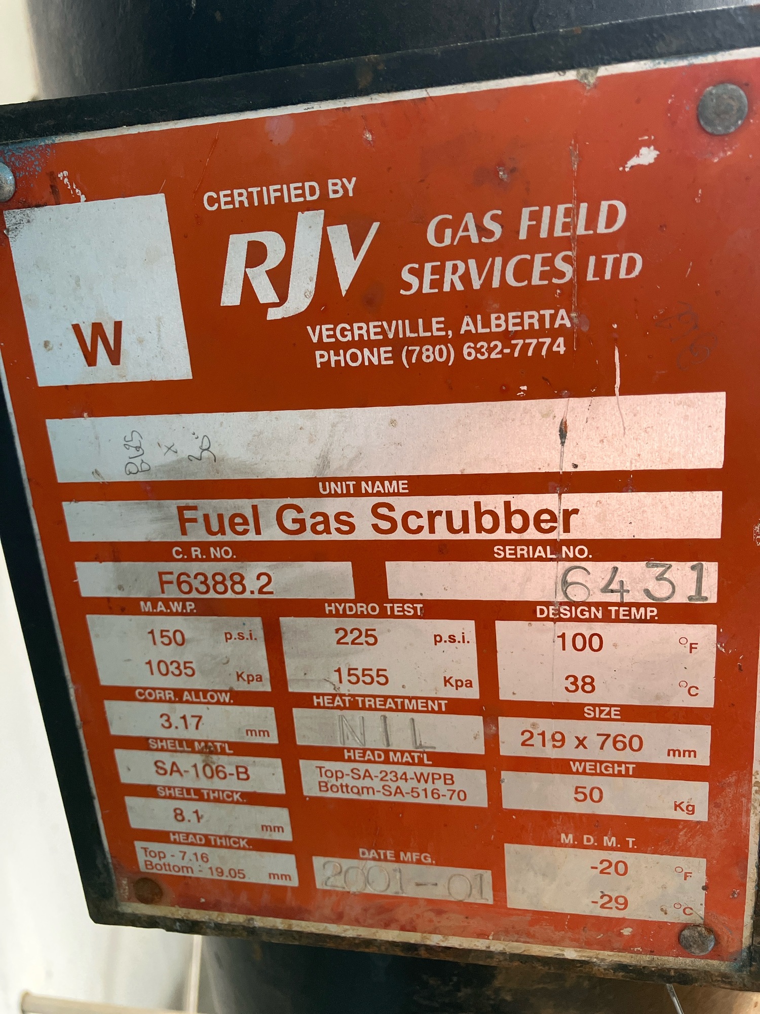 Manufacturer RJV GAS FIELD SERVICES