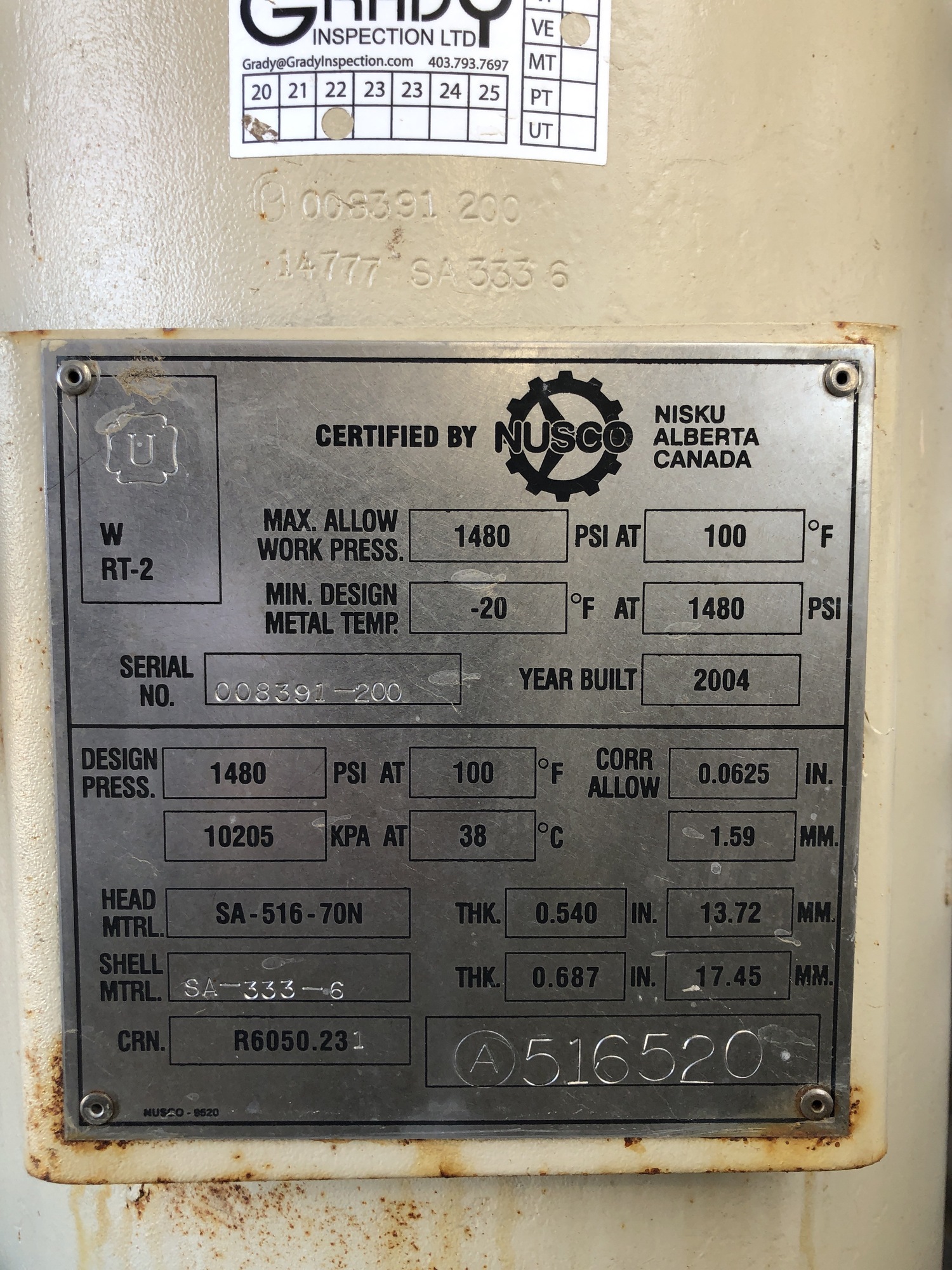 MAWP (PSI) 1480