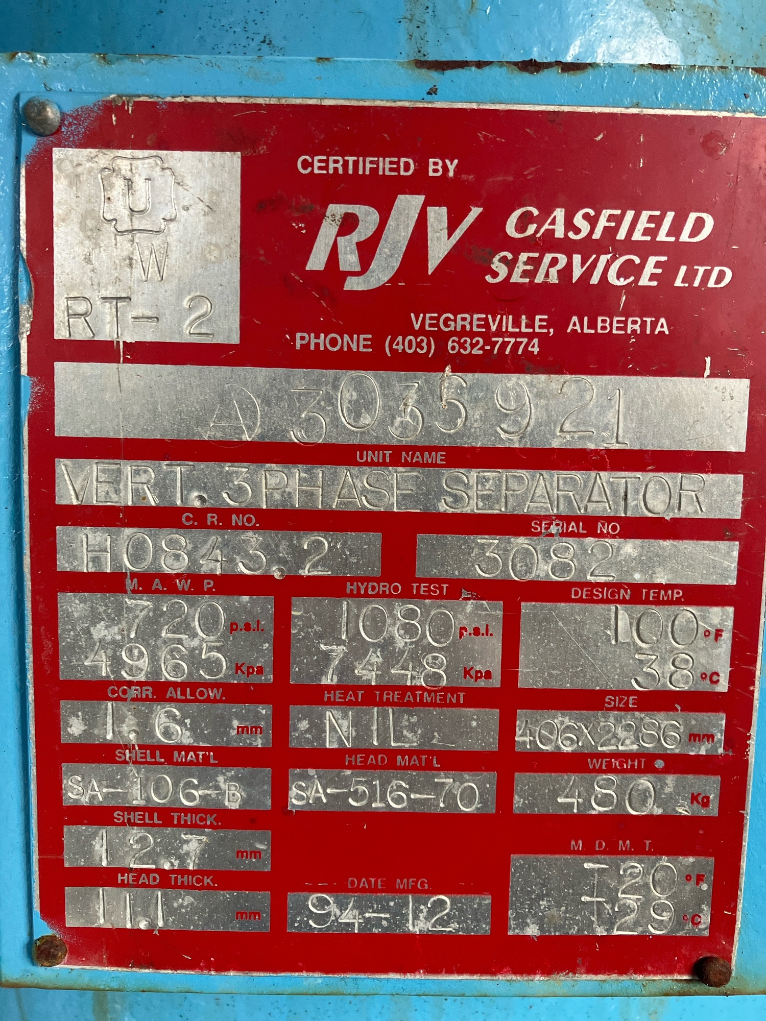 MAWP (PSI) 720