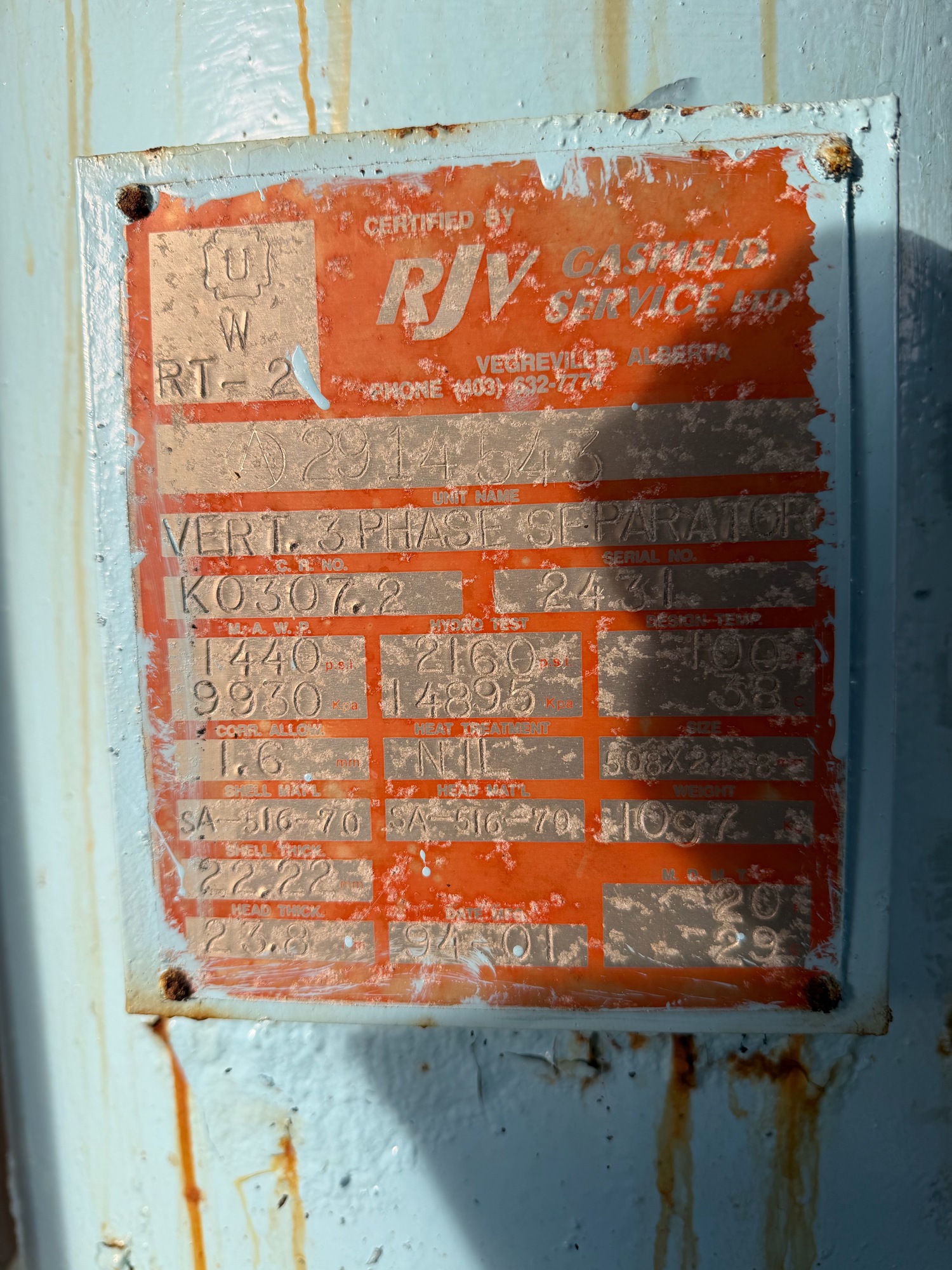 MAWP (PSI) 1440