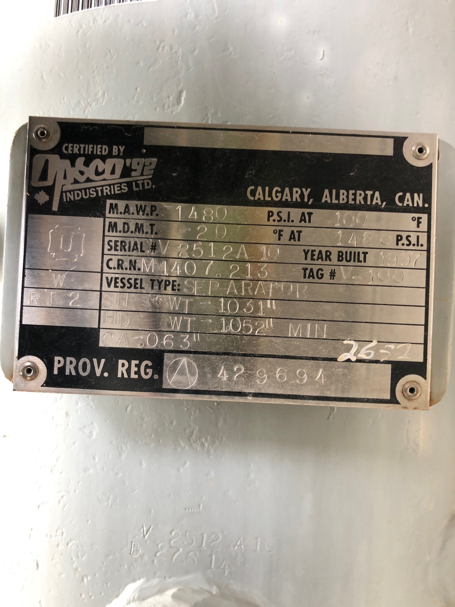 MAWP (PSI) 1480