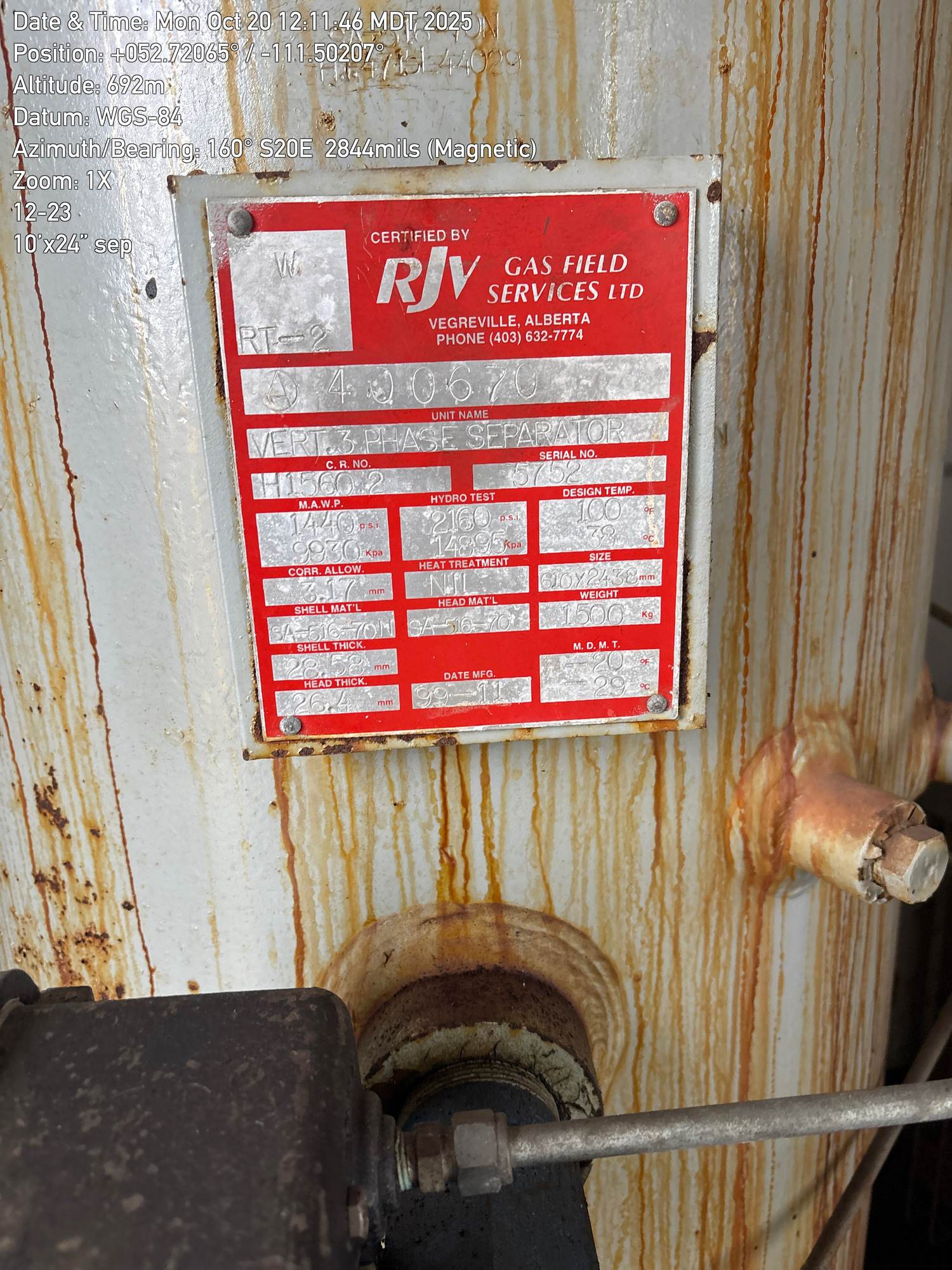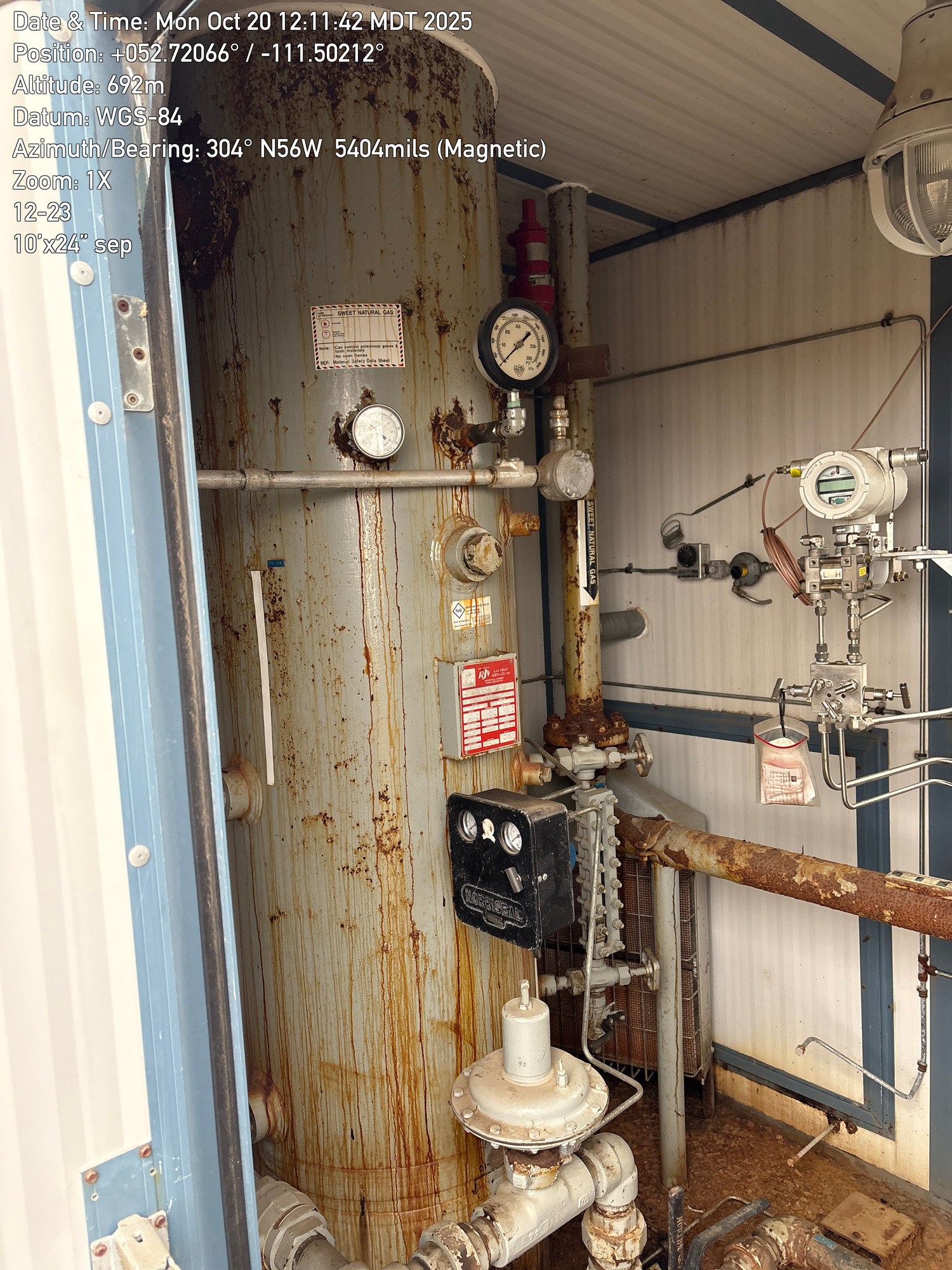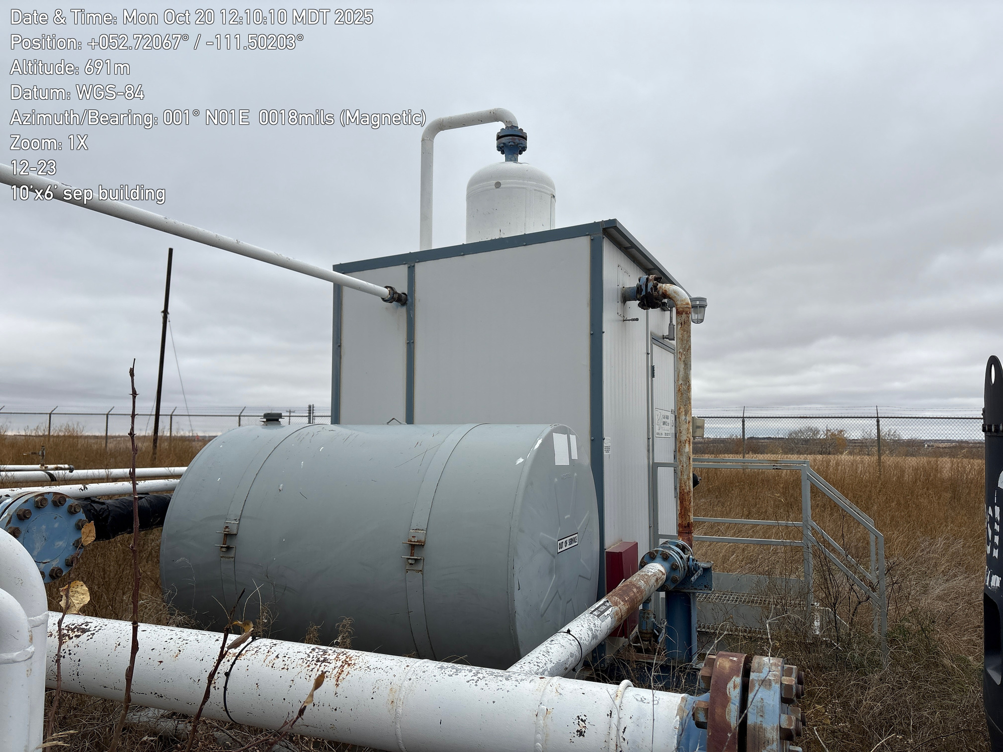 24" x 10' 3-phase vertical separator built in 1999, inside a 10'x6' building located at 12-23-043-11W4 (Facility)