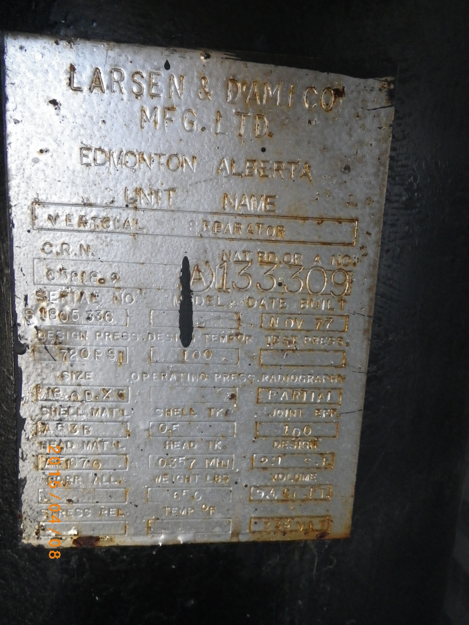 MAWP (PSI) 720