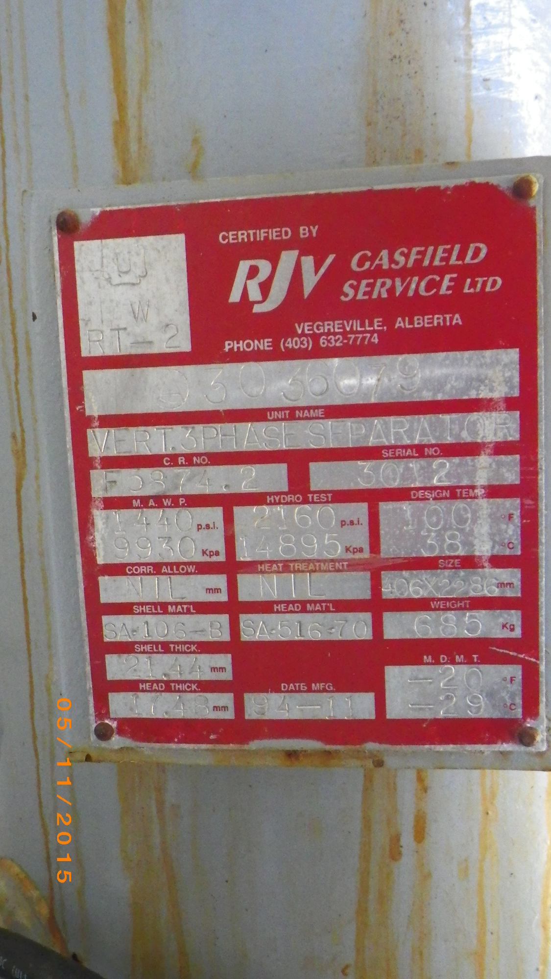 MAWP (PSI) 1440